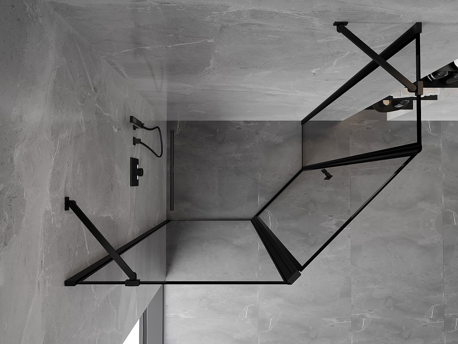 Mexen Mist asymmetrical pentagonal shower enclosure left opening 90 x 80 cm, black frame, black - 8A8-090-080-70-70-L