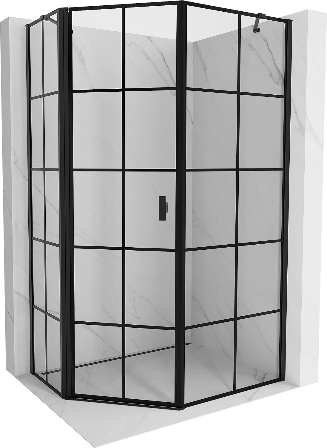 Mexen Mist asymmetric pentagonal shower enclosure, left hinged 80 x 100 cm, black grid, black - 8A8-080-100-70-77-L