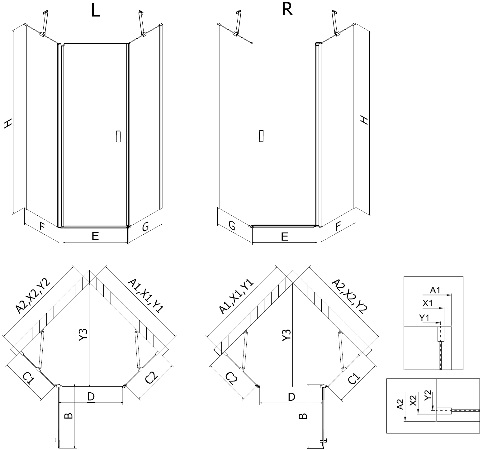 Size: 90x80 cm (right door 90 cm, wall 80 cm)