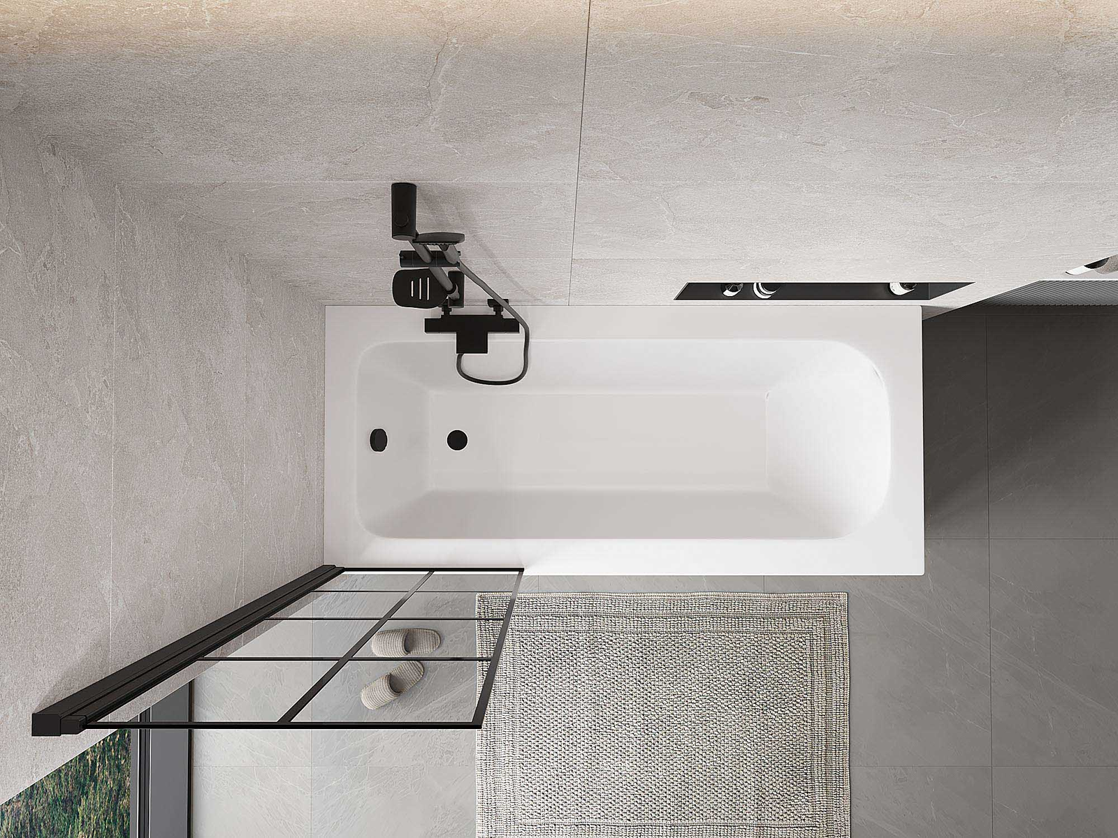 Effective protection against water spilling during bathing. The screen has seals that perfectly fit the glass surface and the edge of the bathtub. A functional solution ensuring safety and easy maintenance of cleanliness.