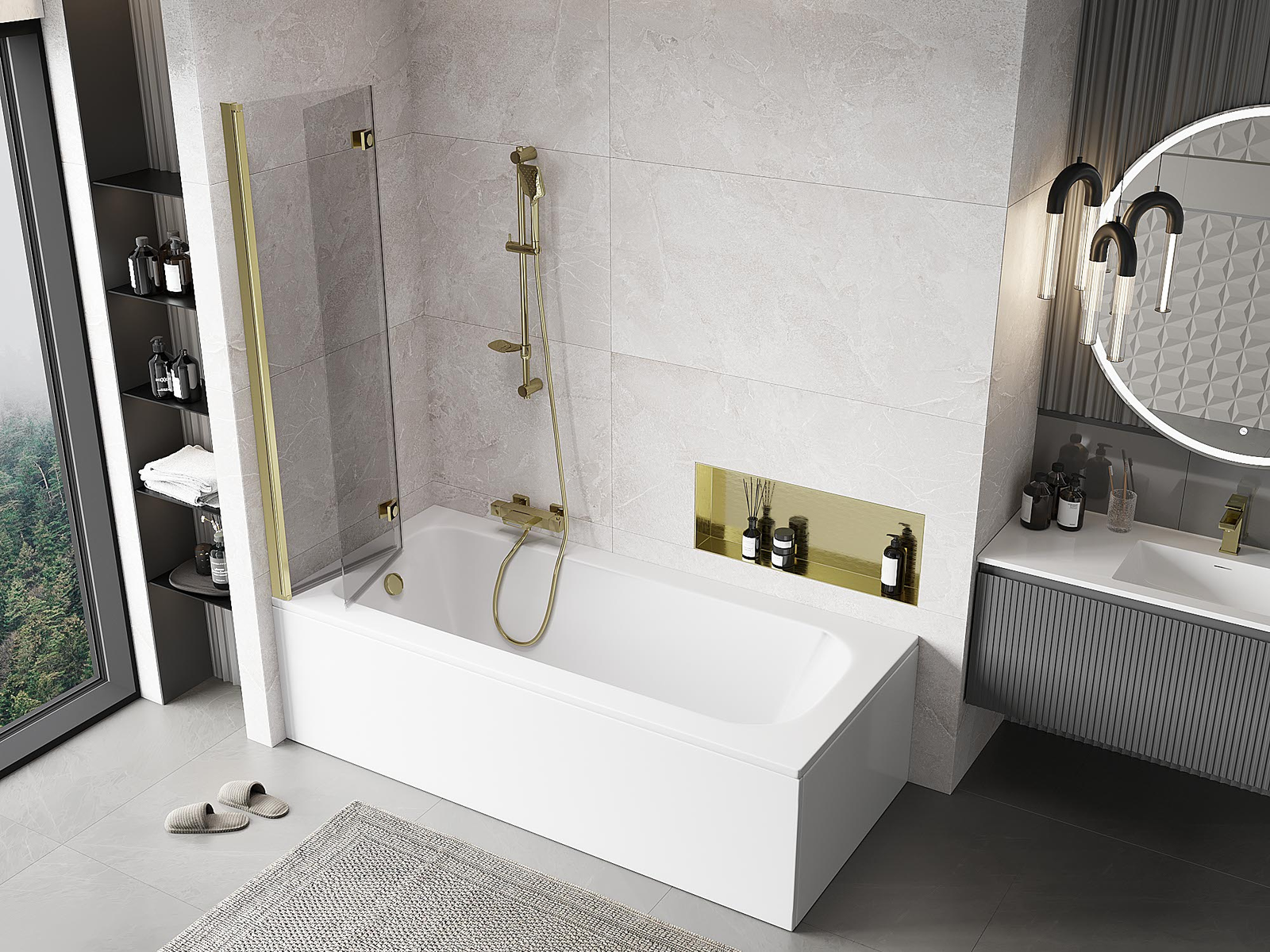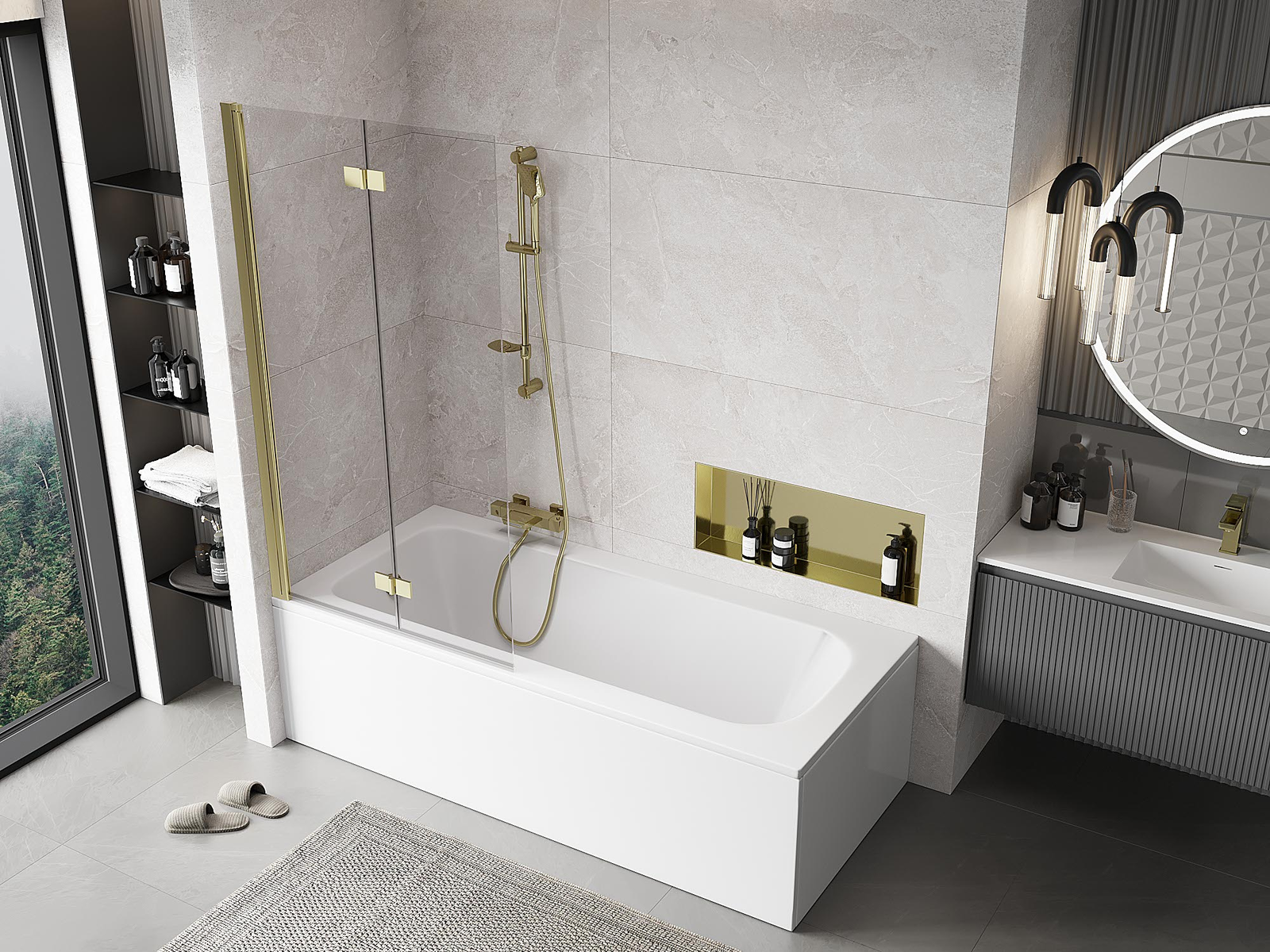 Effective protection against water spilling during bathing. The screen has seals that perfectly fit the glass surface and the edge of the bathtub. A functional solution ensuring safety and easy maintenance of cleanliness.
