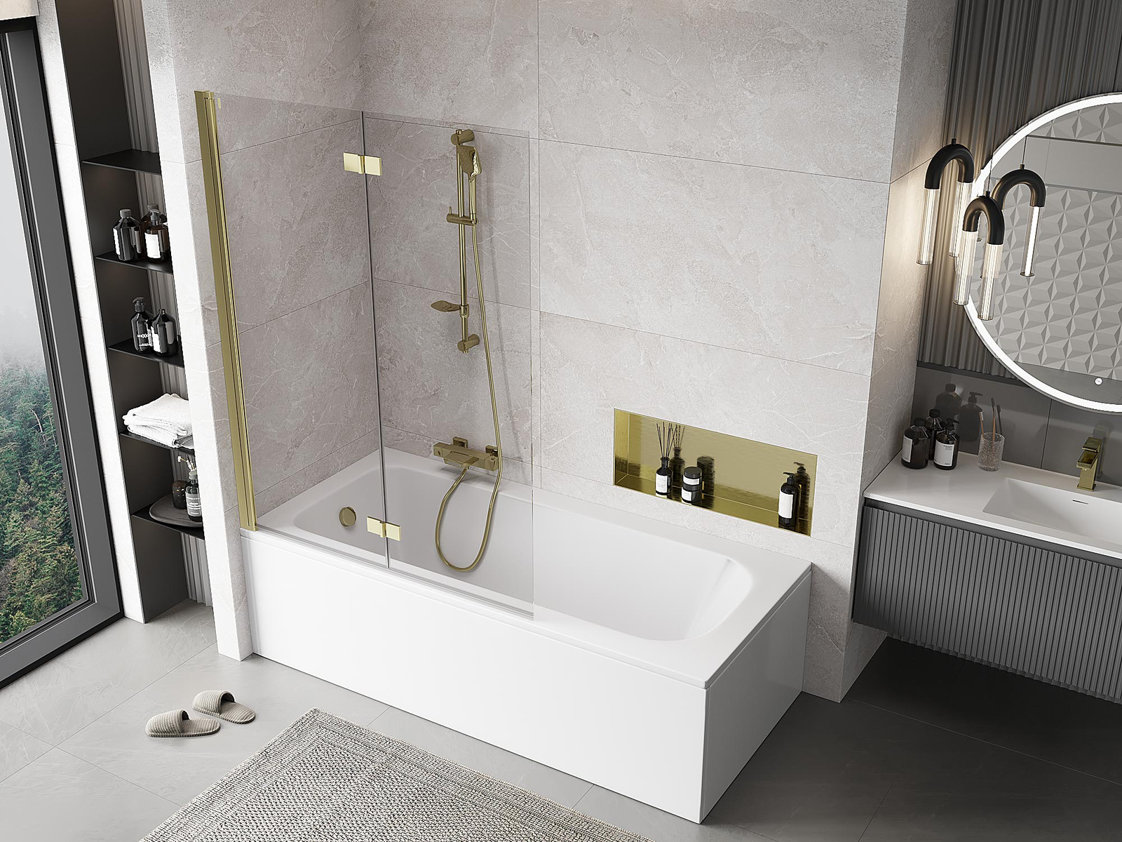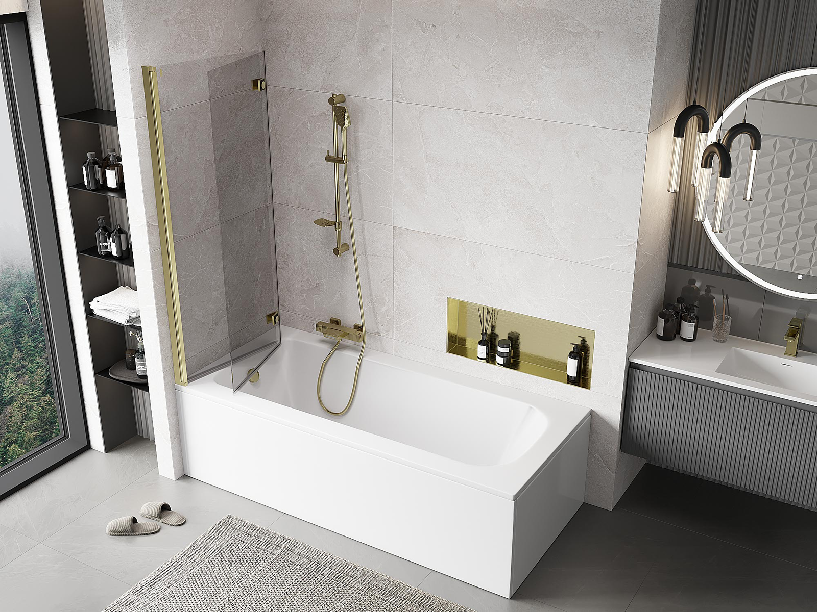 Effective protection against water spilling during bathing. The screen has seals that perfectly fit the glass surface and the edge of the bathtub. A functional solution ensuring safety and easy maintenance of cleanliness.