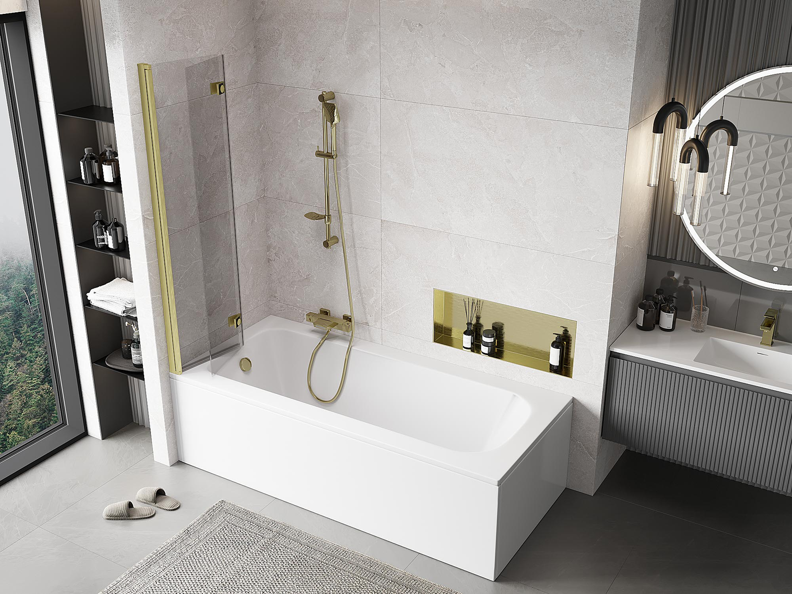 Effective protection against water spilling during bathing. The screen has seals that perfectly fit the glass surface and the edge of the bathtub. A functional solution ensuring safety and easy maintenance of cleanliness.