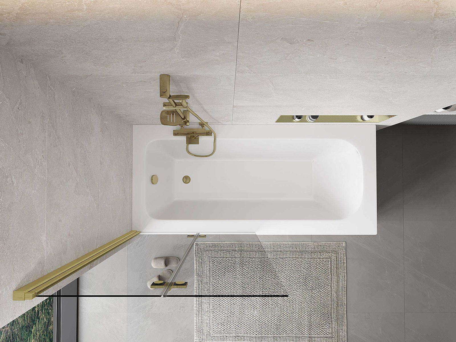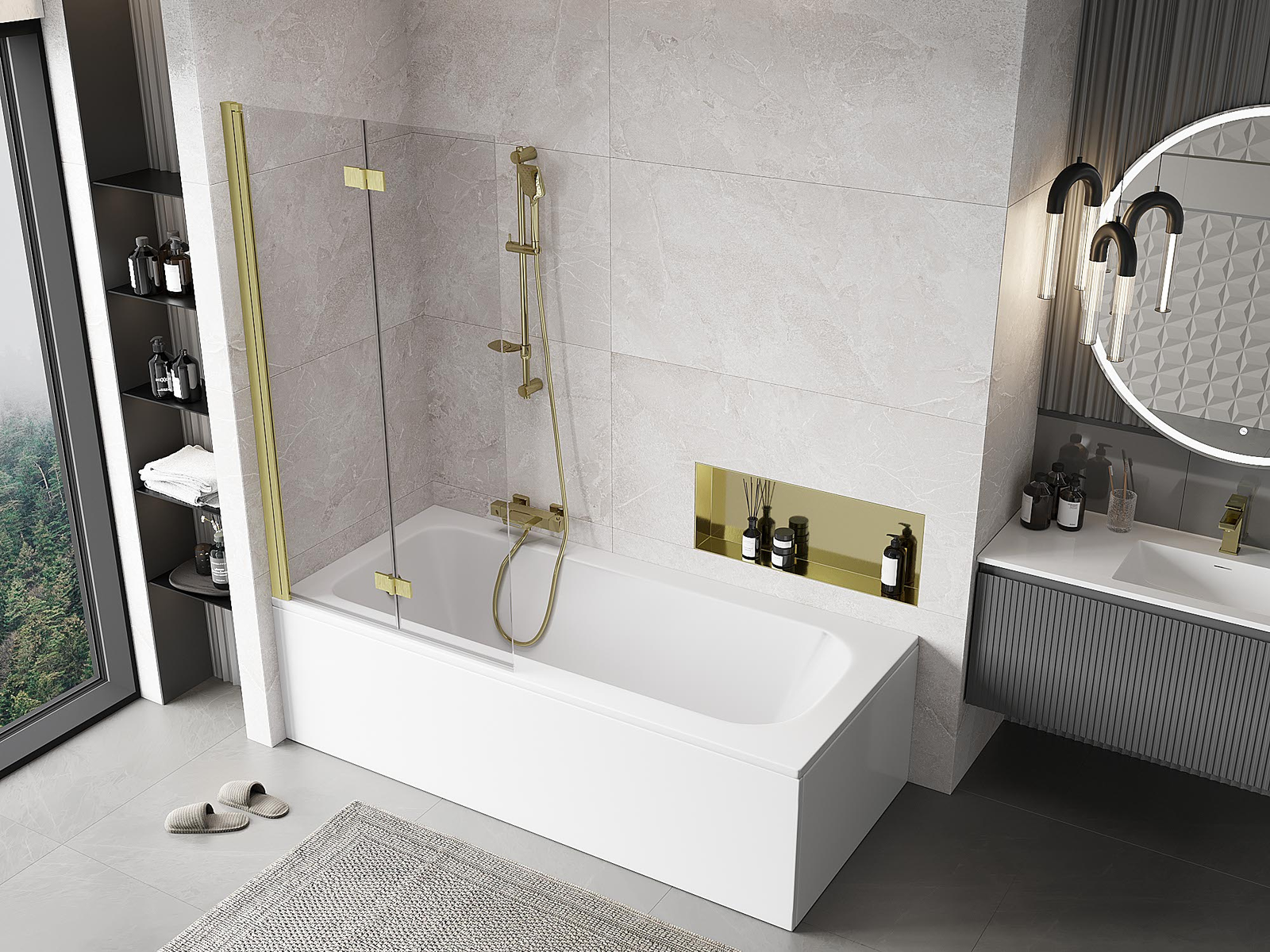 Screen made of two wings with the possibility of folding. This solution allows for more space-saving in the bathroom and enables free use of the remaining space when not using the bathing area.