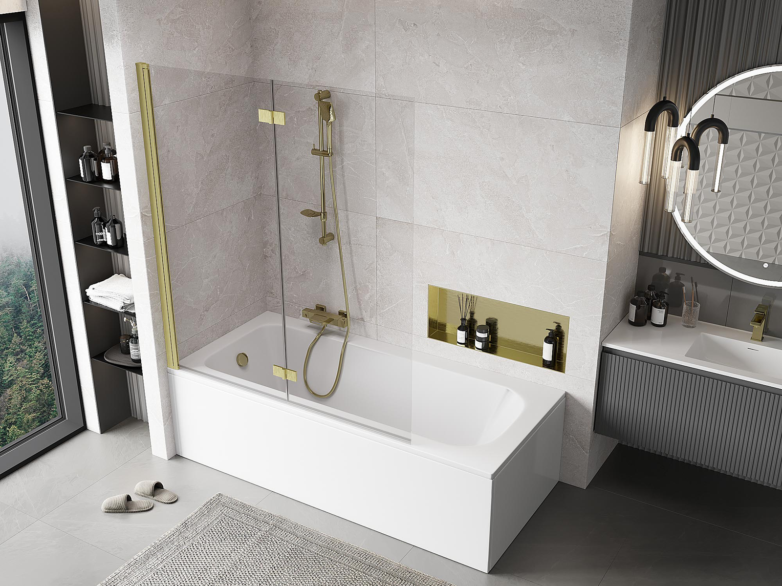 Effective protection against water spilling during bathing. The screen has seals that perfectly fit the glass surface and the edge of the bathtub. A functional solution ensuring safety and easy maintenance of cleanliness.