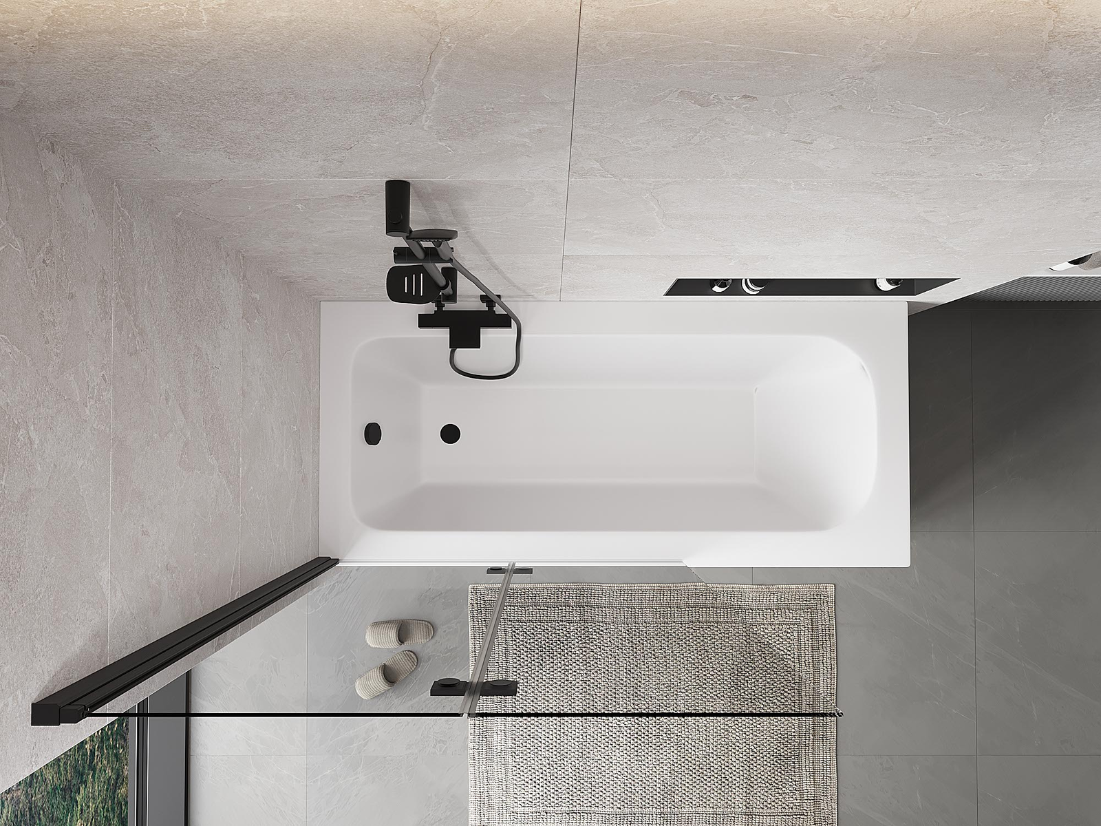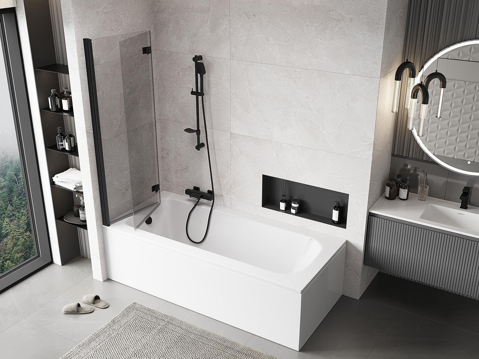 Effective protection against water spilling during bathing. The screen has seals that perfectly fit the glass surface and the edge of the bathtub. A functional solution ensuring safety and easy maintenance of cleanliness.