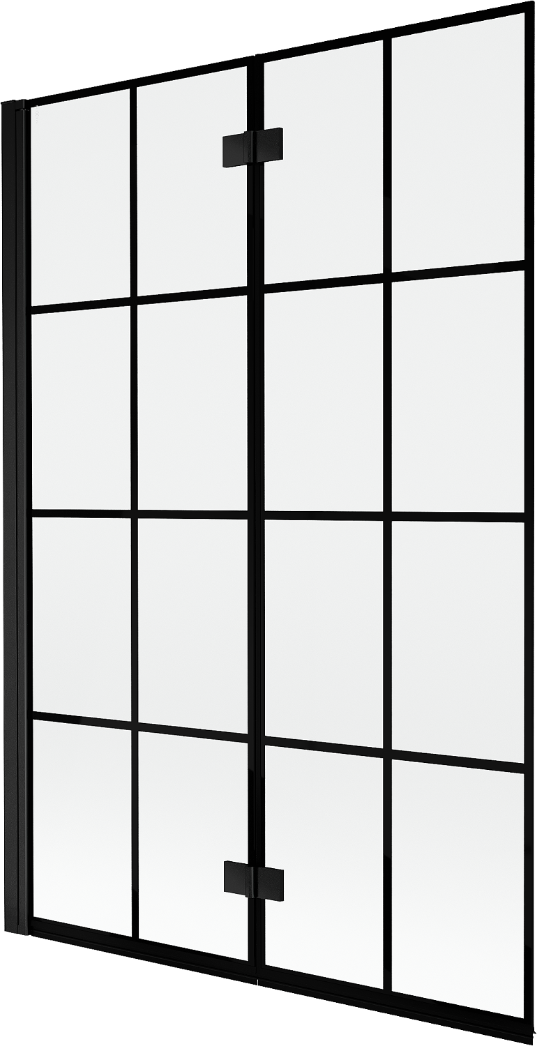 Screen made of two wings with the possibility of folding. This solution allows for more space-saving in the bathroom and enables free use of the remaining space when not using the bathing area.