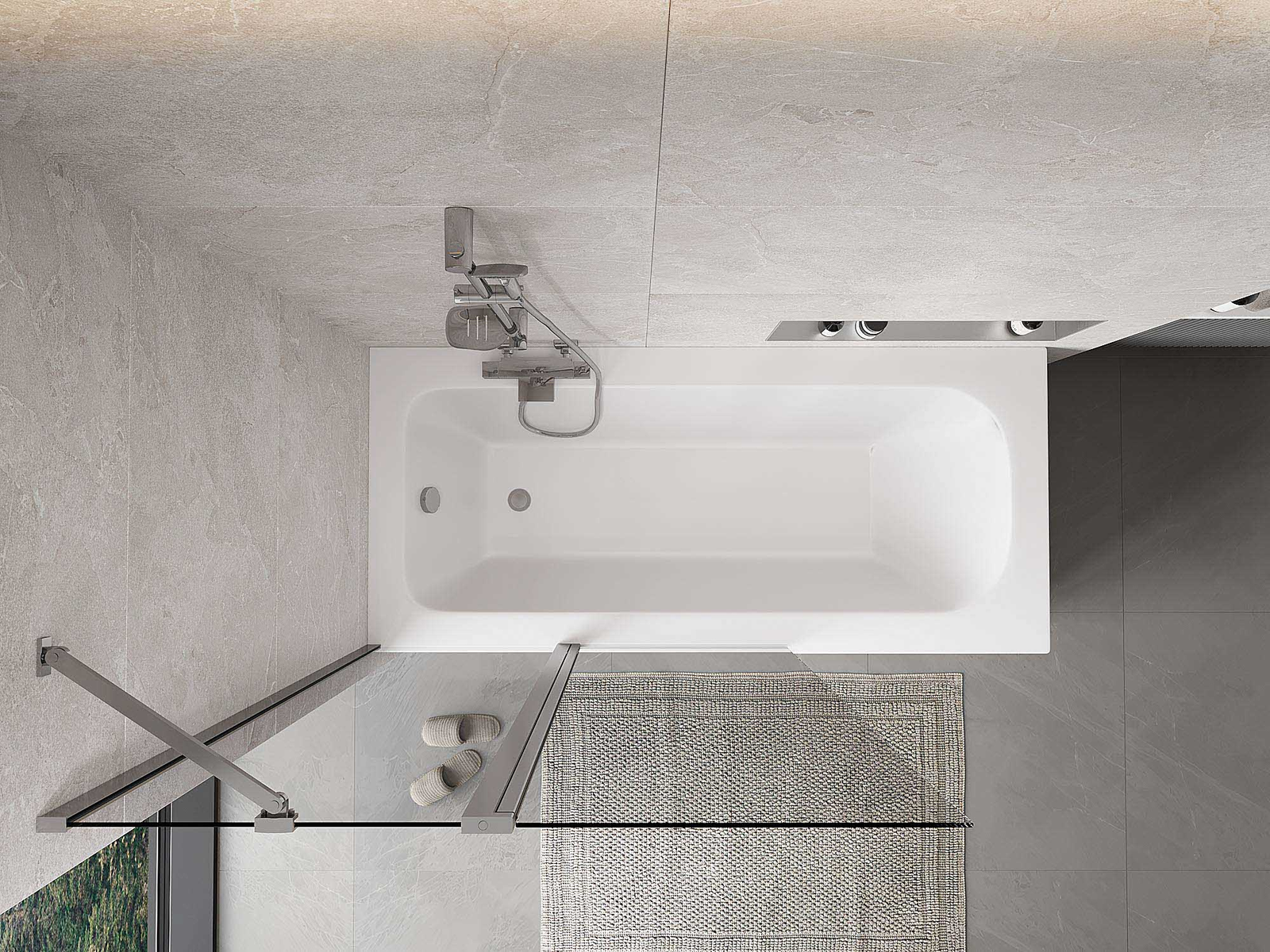Screen made of two wings with the possibility of folding. This solution allows for more space-saving in the bathroom and enables free use of the remaining space when not using the bathing area.