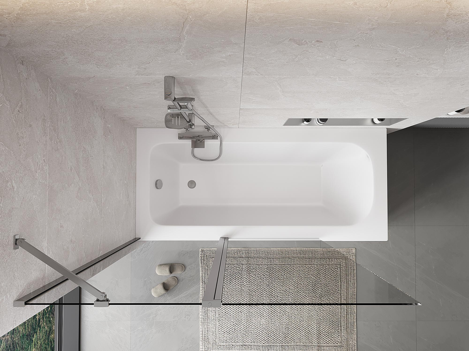 Effective protection against water spilling during bathing. The screen has seals that perfectly fit the glass surface and the edge of the bathtub. A functional solution ensuring safety and easy maintenance of cleanliness.