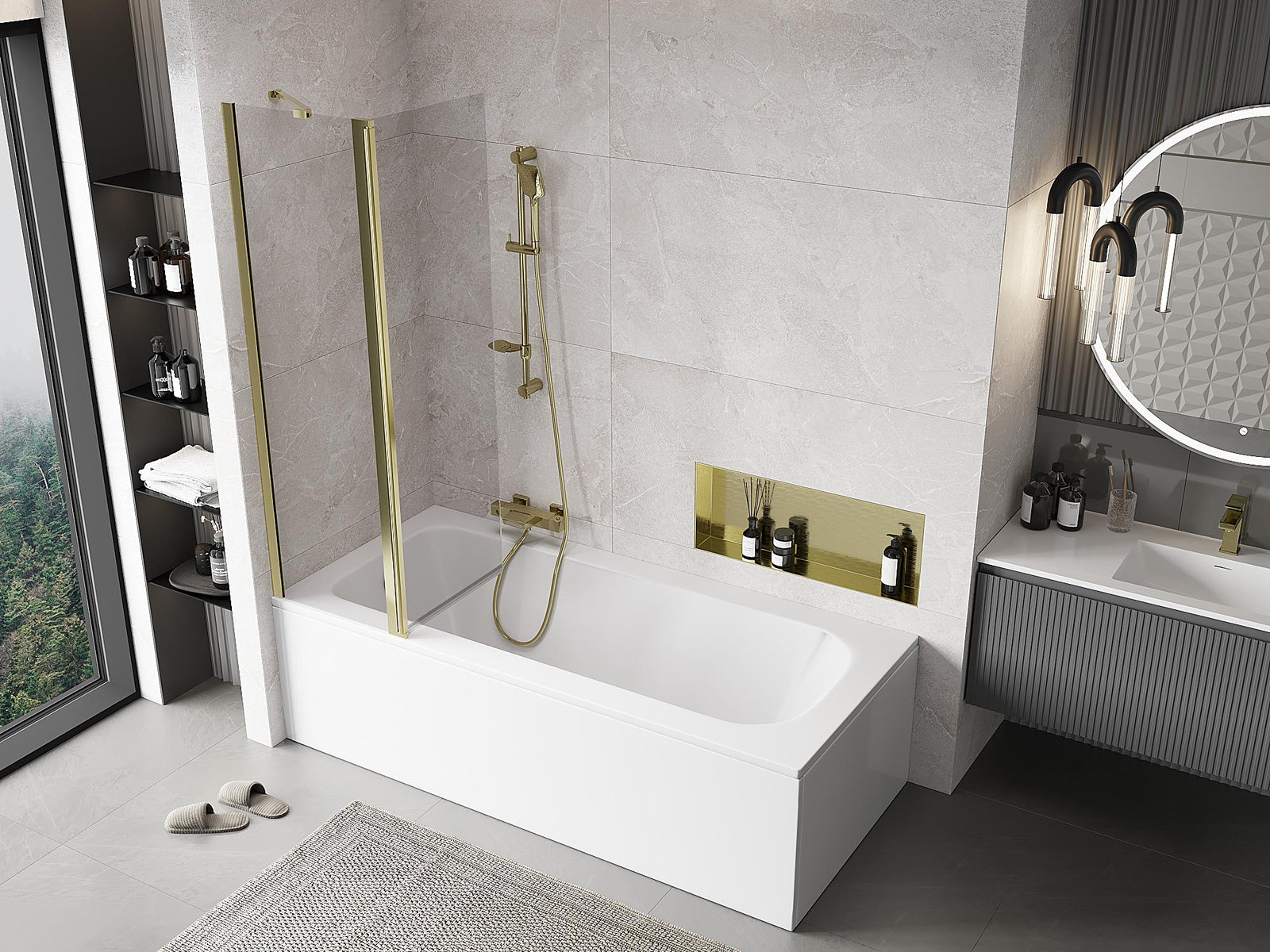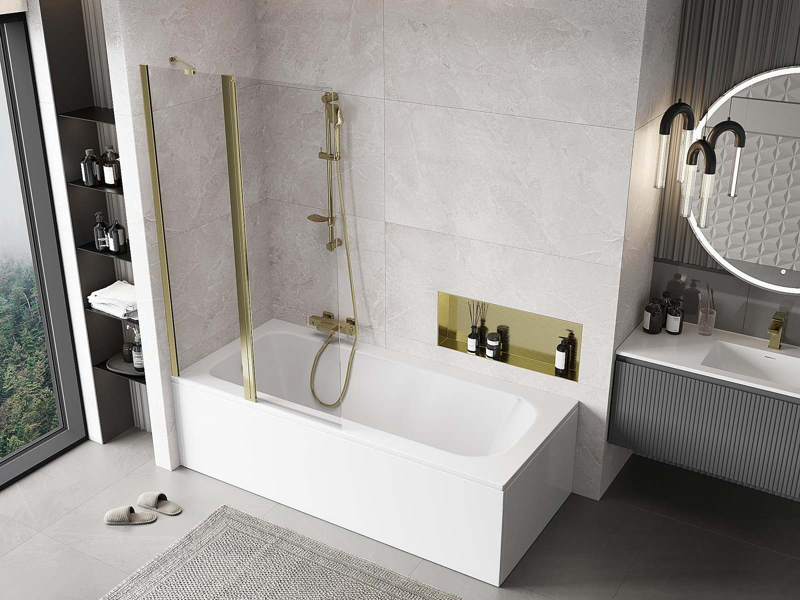 Screen made of two wings with the possibility of folding. This solution allows for more space-saving in the bathroom and enables free use of the remaining space when not using the bathing area.