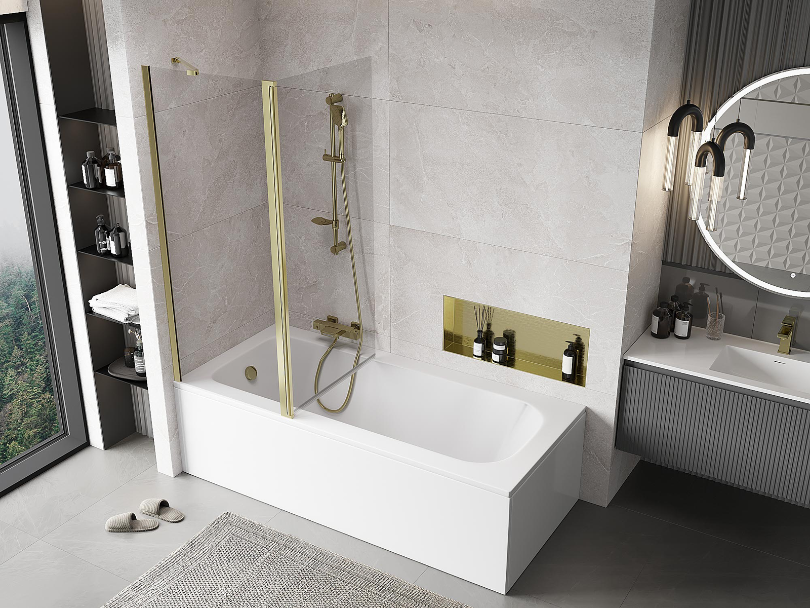 Mexen Mist 2-Panel Bath Screen 140 x 150 cm, Transparent, Gold - 8A9-140-011-50-00