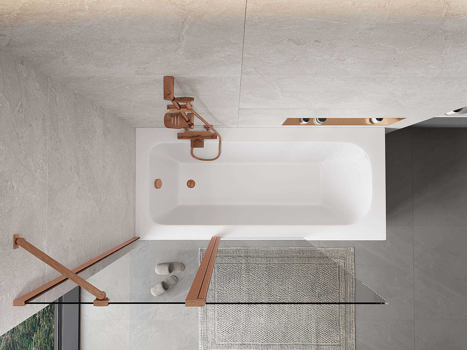 Effective protection against water spilling during bathing. The screen has seals that perfectly fit the glass surface and the edge of the bathtub. A functional solution ensuring safety and easy maintenance of cleanliness.