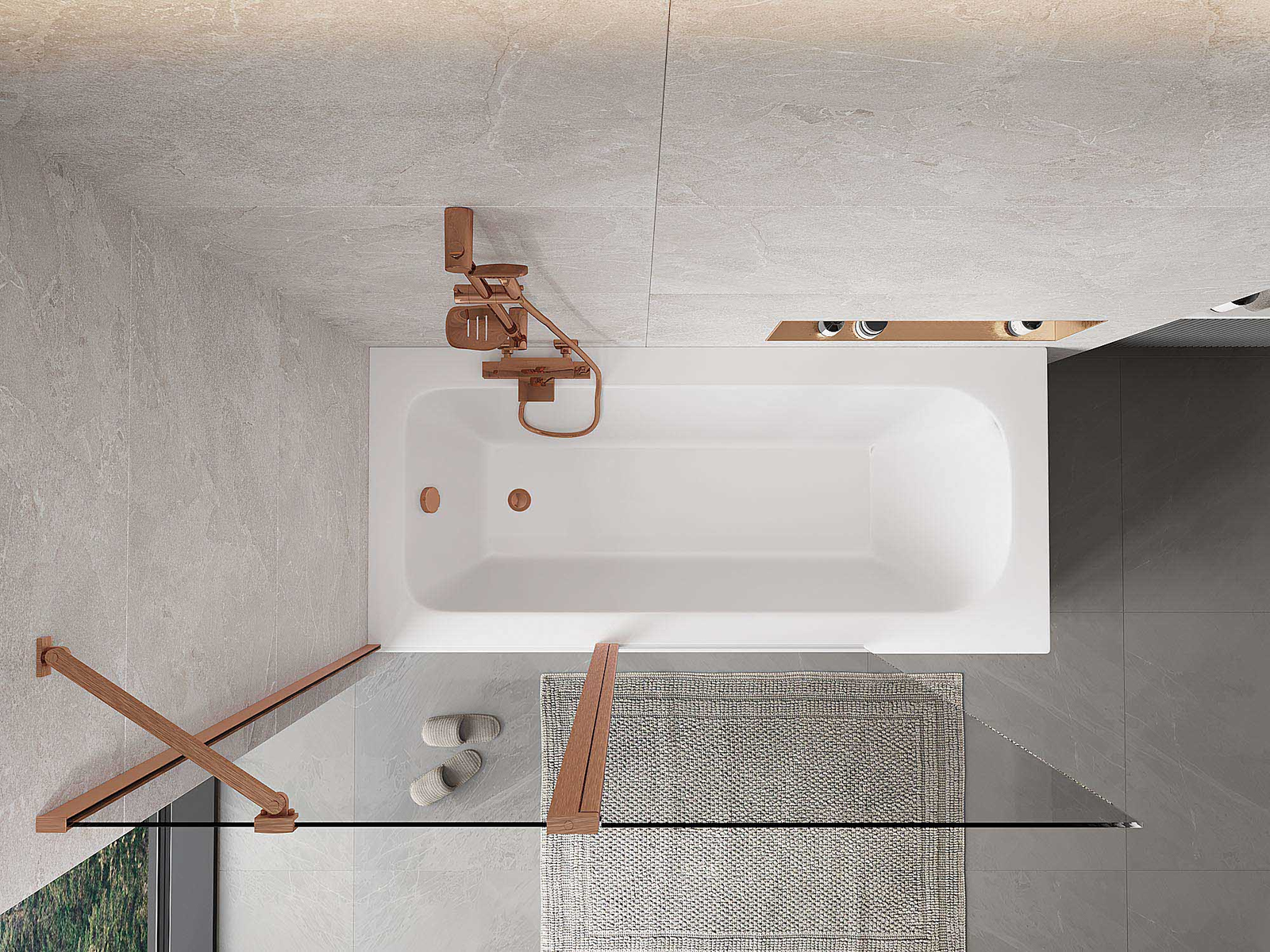Screen made of two wings with the possibility of folding. This solution allows for more space-saving in the bathroom and enables free use of the remaining space when not using the bathing area.