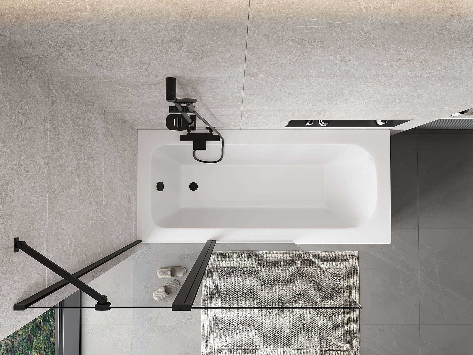Effective protection against water spilling during bathing. The screen has seals that perfectly fit the glass surface and the edge of the bathtub. A functional solution ensuring safety and easy maintenance of cleanliness.