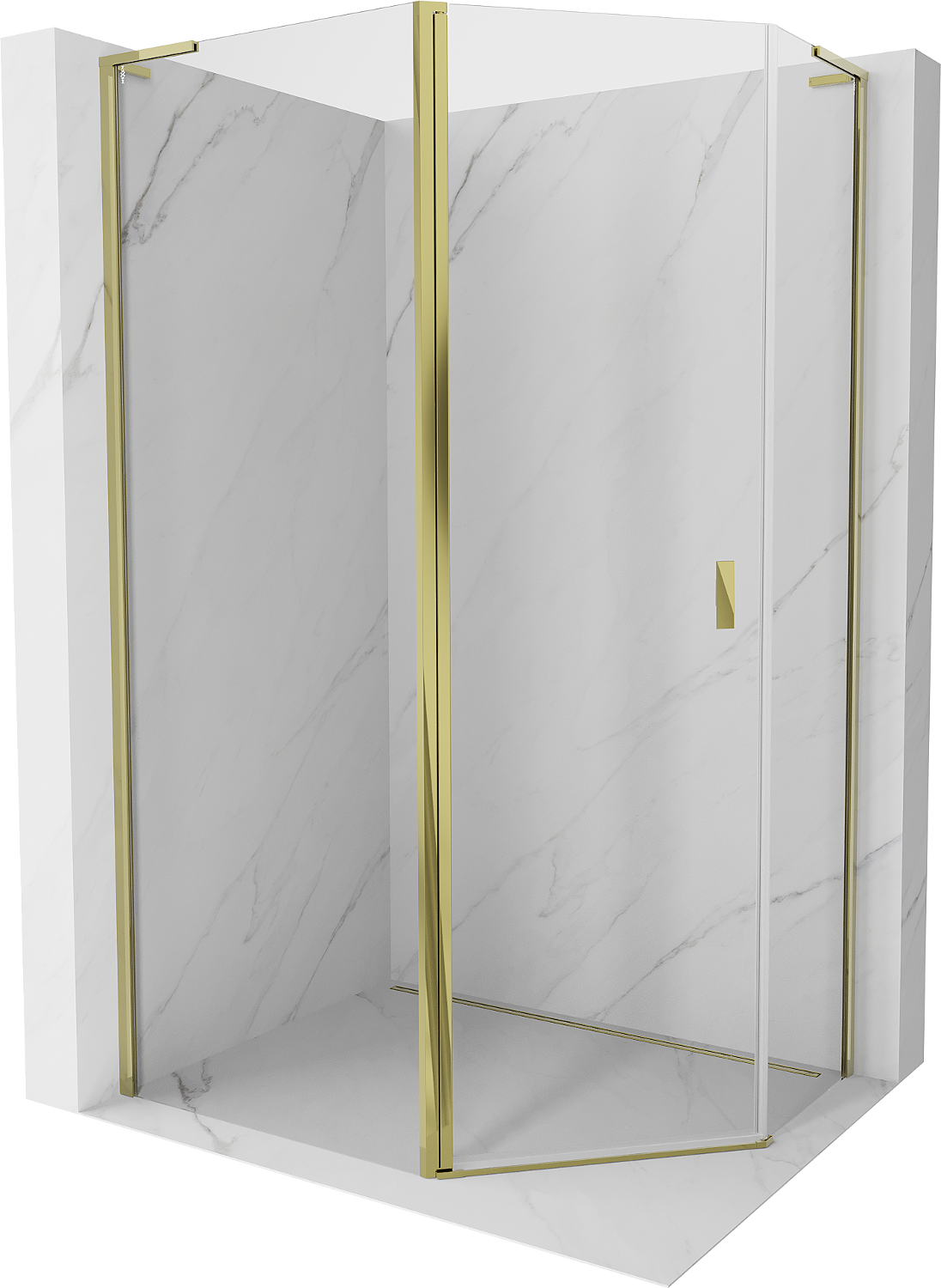 Mexen Mist L pentagonal asymmetrical hinged shower enclosure 100 x 90 cm, transparent, gold - 8A8L-100-090-50-00