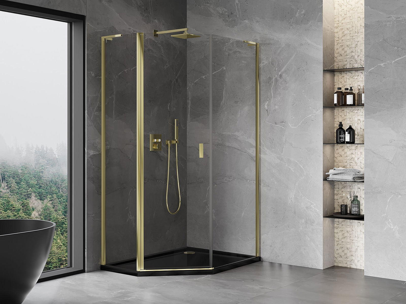 Mexen Mist L asymmetrical pentagonal shower enclosure 80 x 100 cm, transparent, gold - 8A8L-080-100-50-00