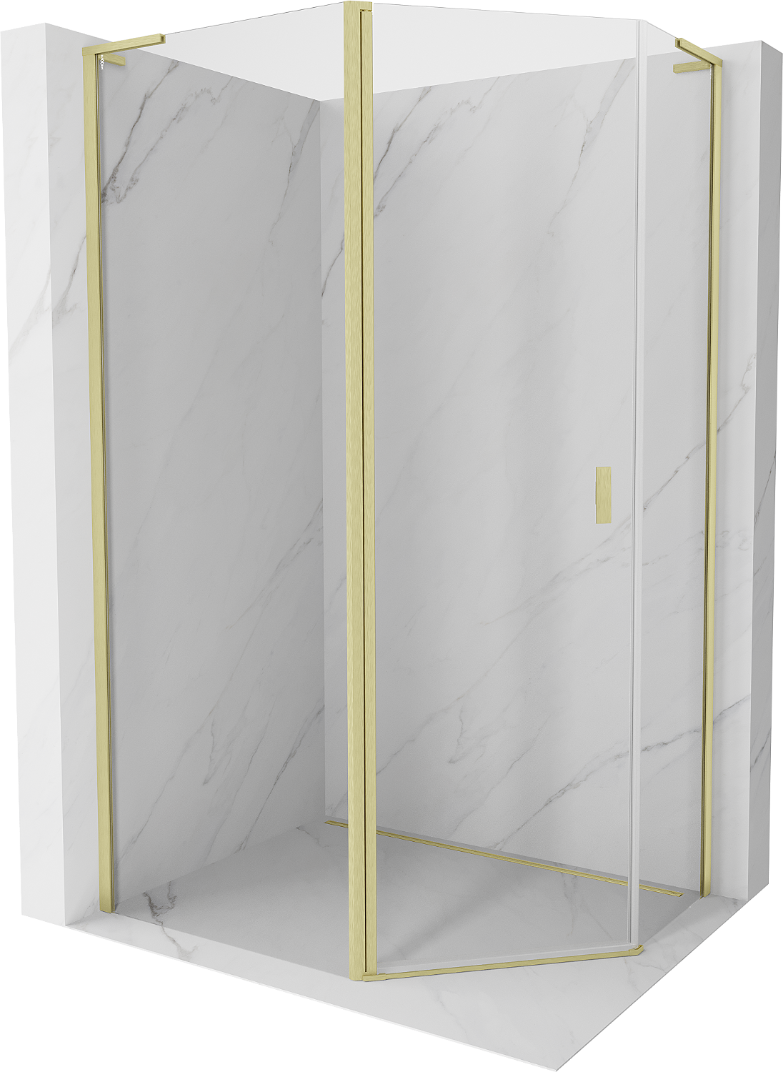 Mexen Mist L pentagonal asymmetrical pivot shower enclosure 100x80 cm, transparent, brushed gold - 8A8L-100-080-55-00