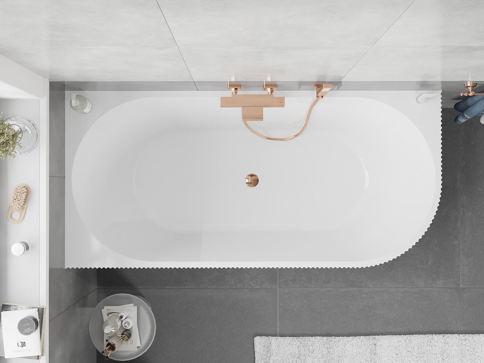 This is a modern material combining an elegant appearance with high durability. It is resistant to mechanical damage, easy to clean, and pleasant to the touch. The transparent form and thin rim of the bathtub add lightness and unique character, creating an impactful accent in bathroom design.