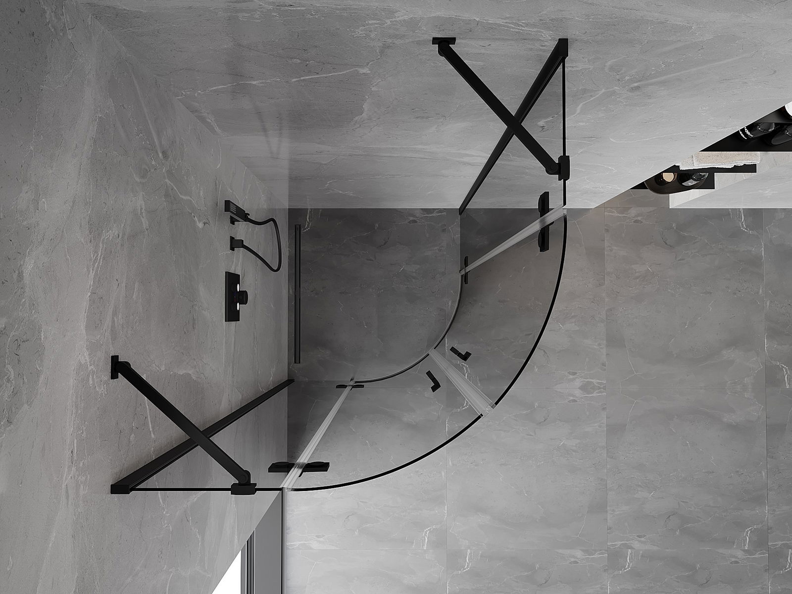 Mexen Mist semi-circular pivot shower cabin 100 x 100 cm, transparent, black - 8A33-100-100-70-00