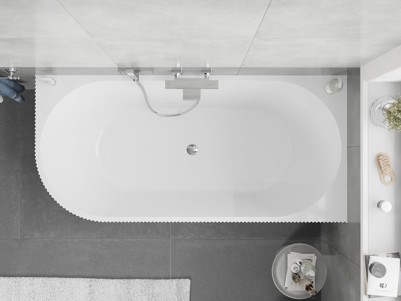 The use of acrylic in the bathroom is a very practical solution. Acrylic retains the water temperature well, preventing it from cooling down quickly. It also has acoustic properties, which helps reduce noise in the bathroom.