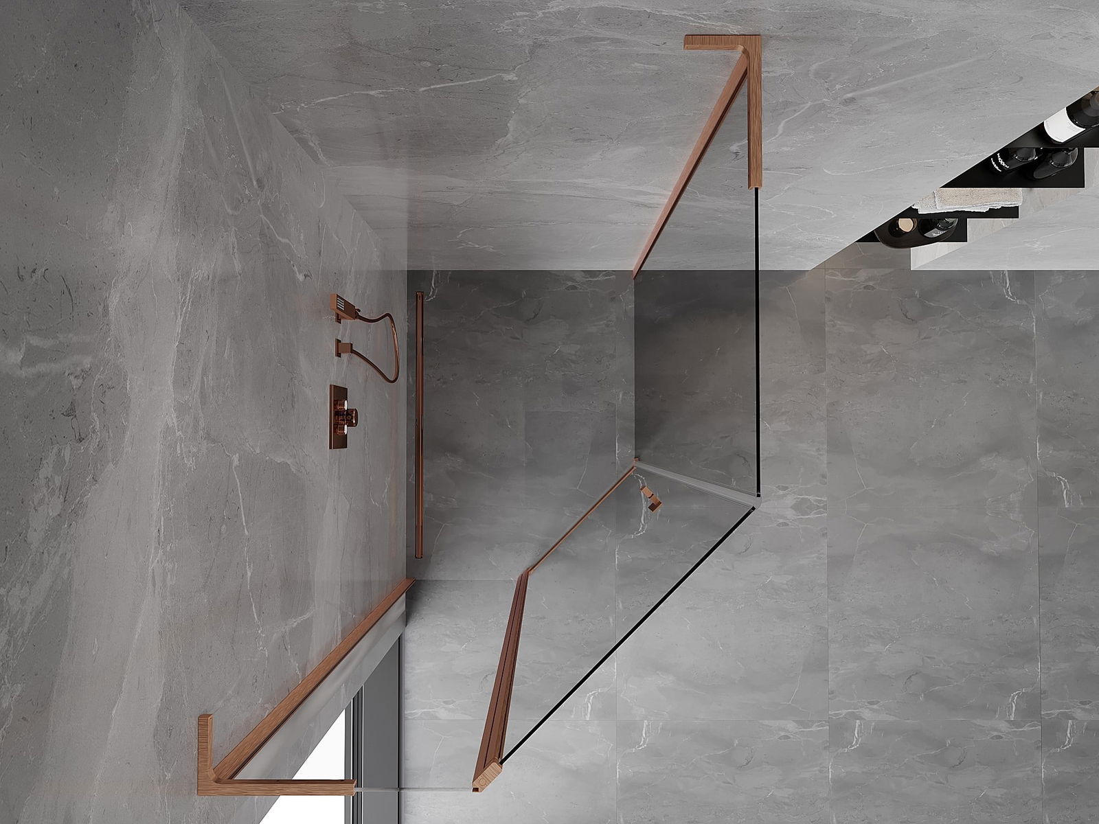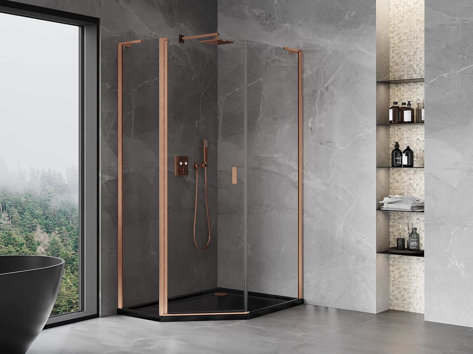 Mexen Mist L pentagonal asymmetrical hinged shower enclosure 80x90 cm, transparent, brushed copper - 8A8L-080-090-65-00