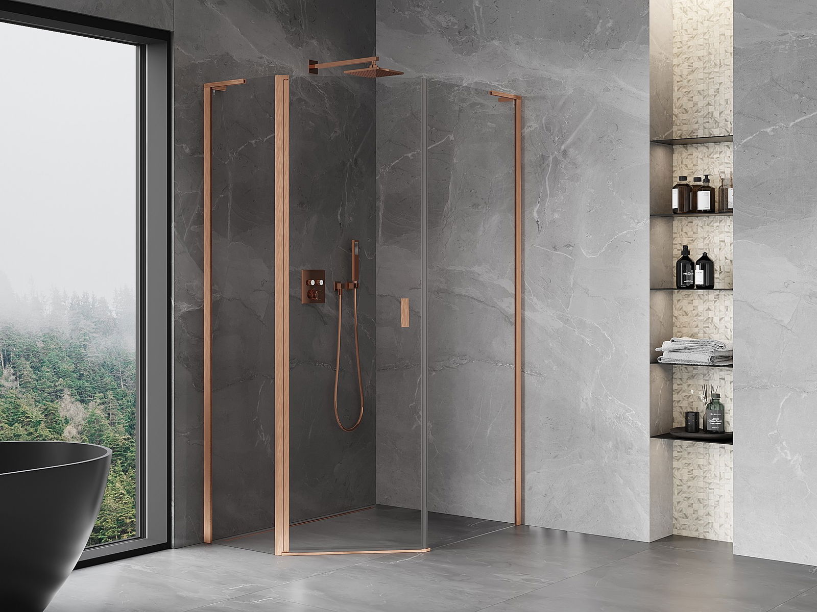 Mexen Mist L asymmetrical pentagonal shower enclosure, swing 90x100 cm, transparent, brushed copper - 8A8L-090-100-65-00