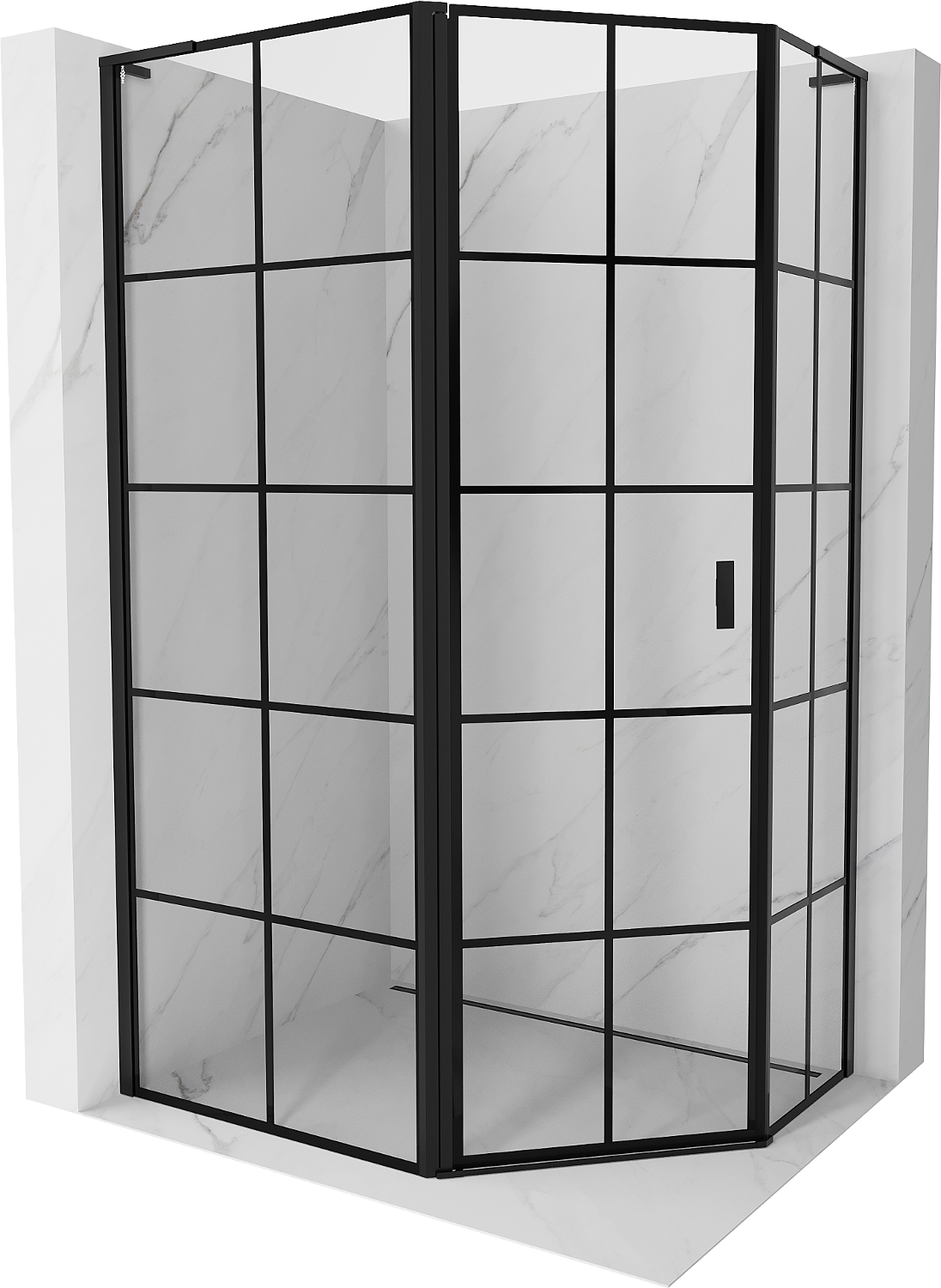 Mexen Mist L asymmetrical pentagonal shower enclosure, left hinged 100 x 80 cm, black grid, black - 8A8L-100-080-70-77-L