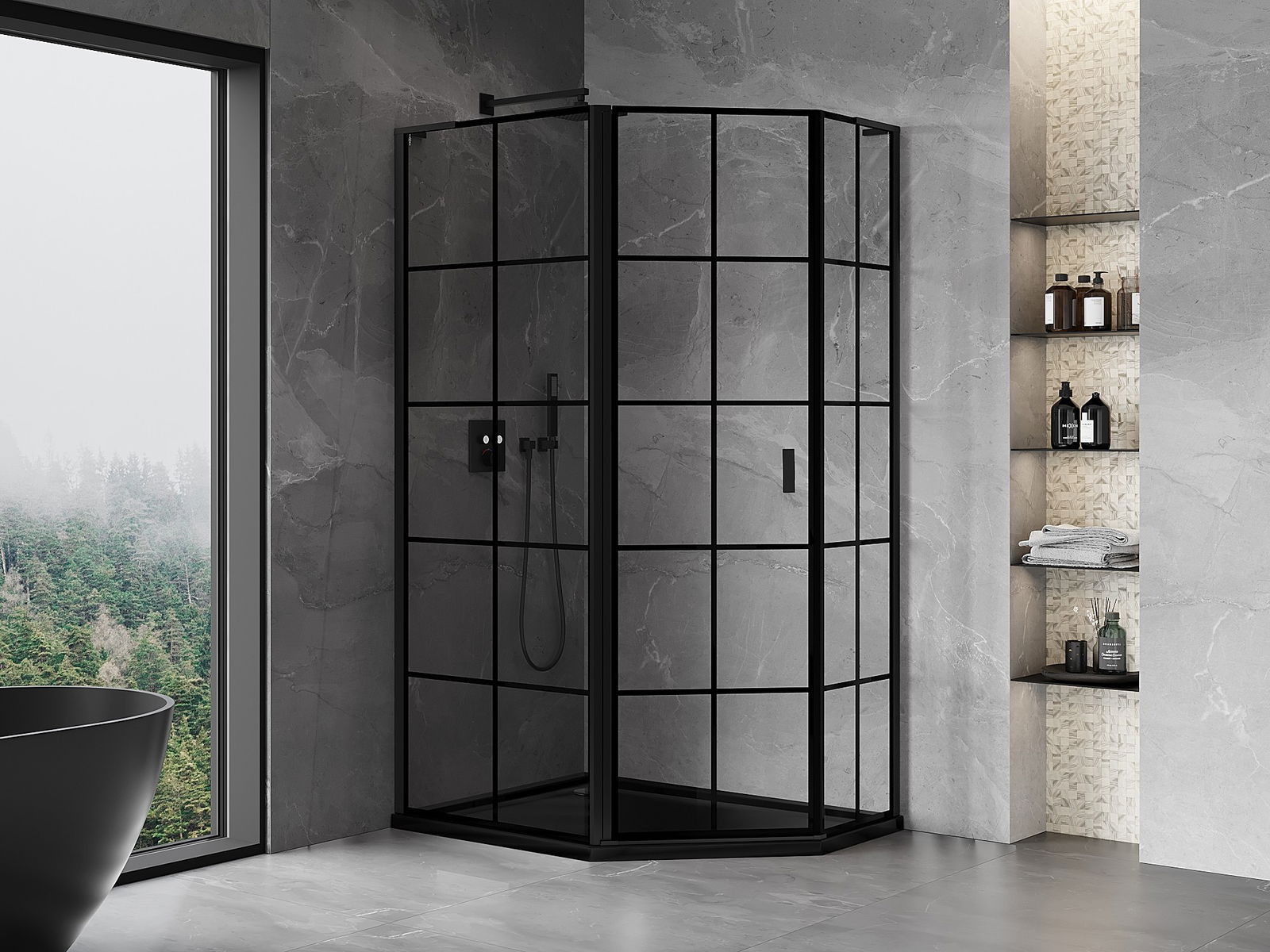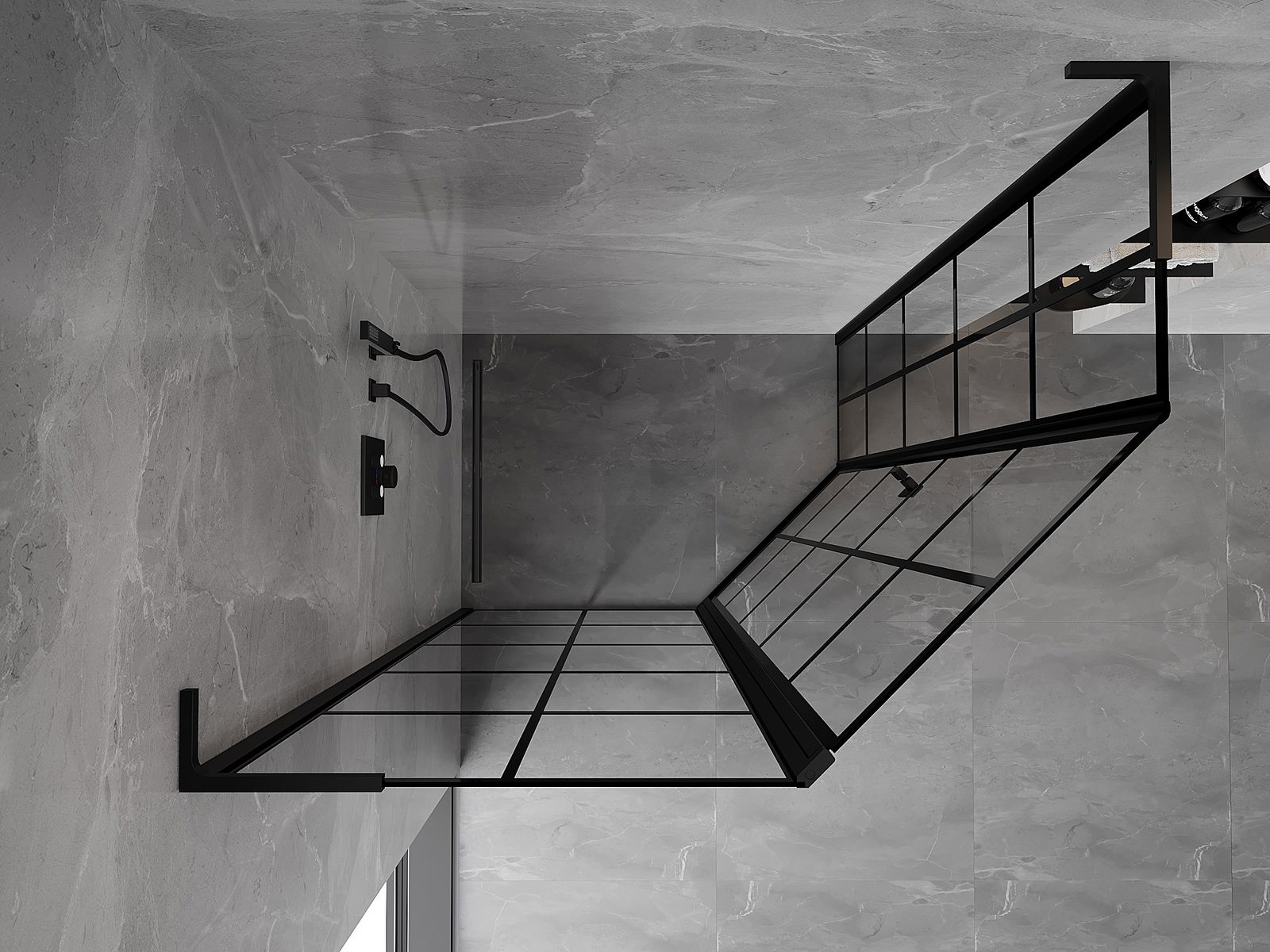 Mexen Mist L asymmetrical pentagonal shower enclosure, left tilt, 100 x 90 cm, black grid, black - 8A8L-100-090-70-77-L