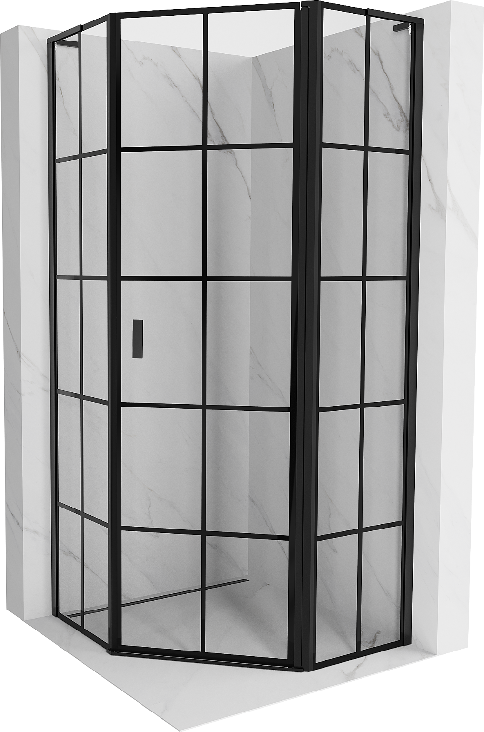 Mexen Mist L pentagonal shower enclosure, right hinged, 100 x 100 cm, black grid, black - 8A8L-100-100-70-77-P