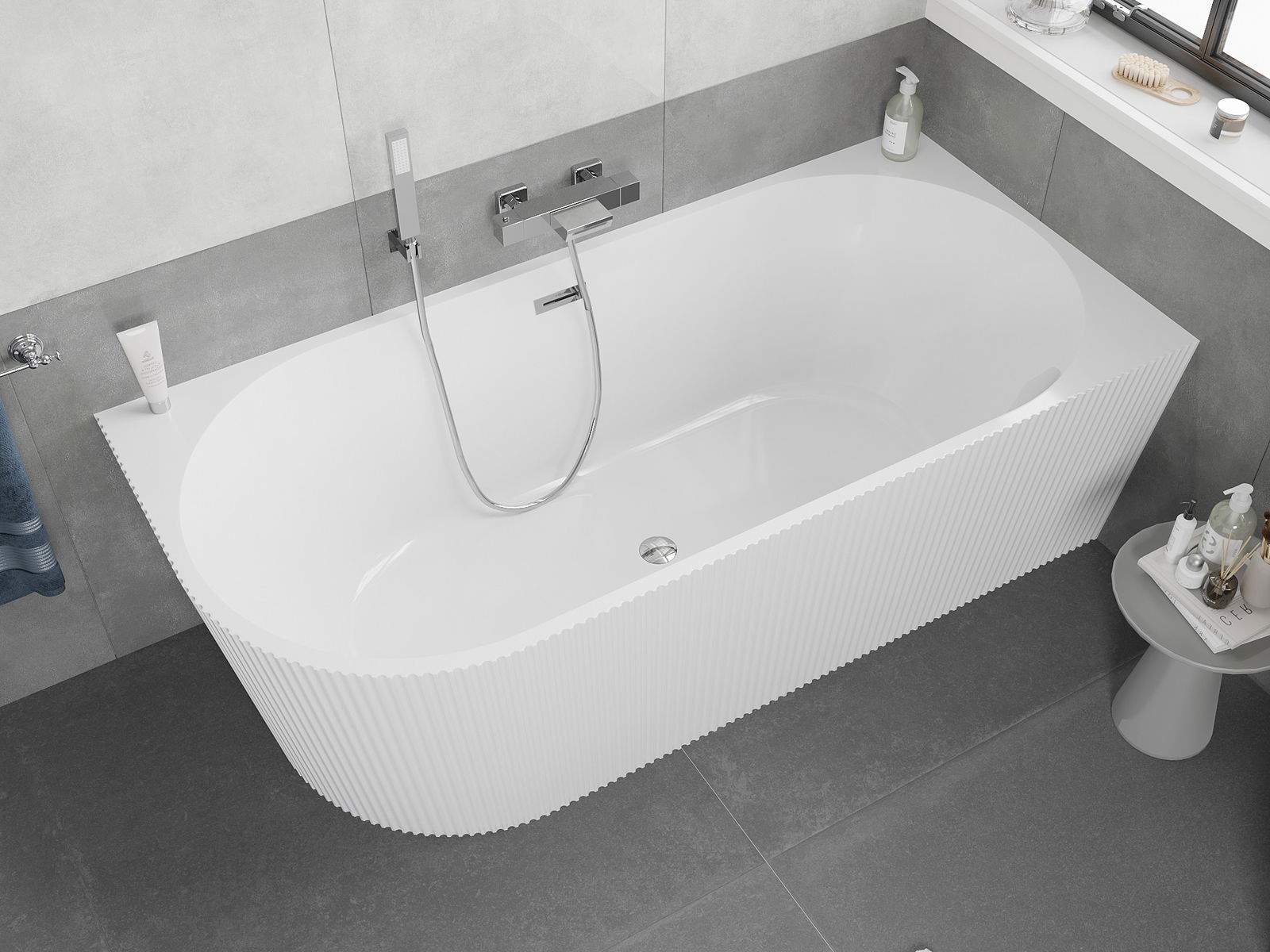 Mexen Silo free-standing corner right fluted bathtub 170 x 80 cm, white, chrome overflow - 52891708000P-01