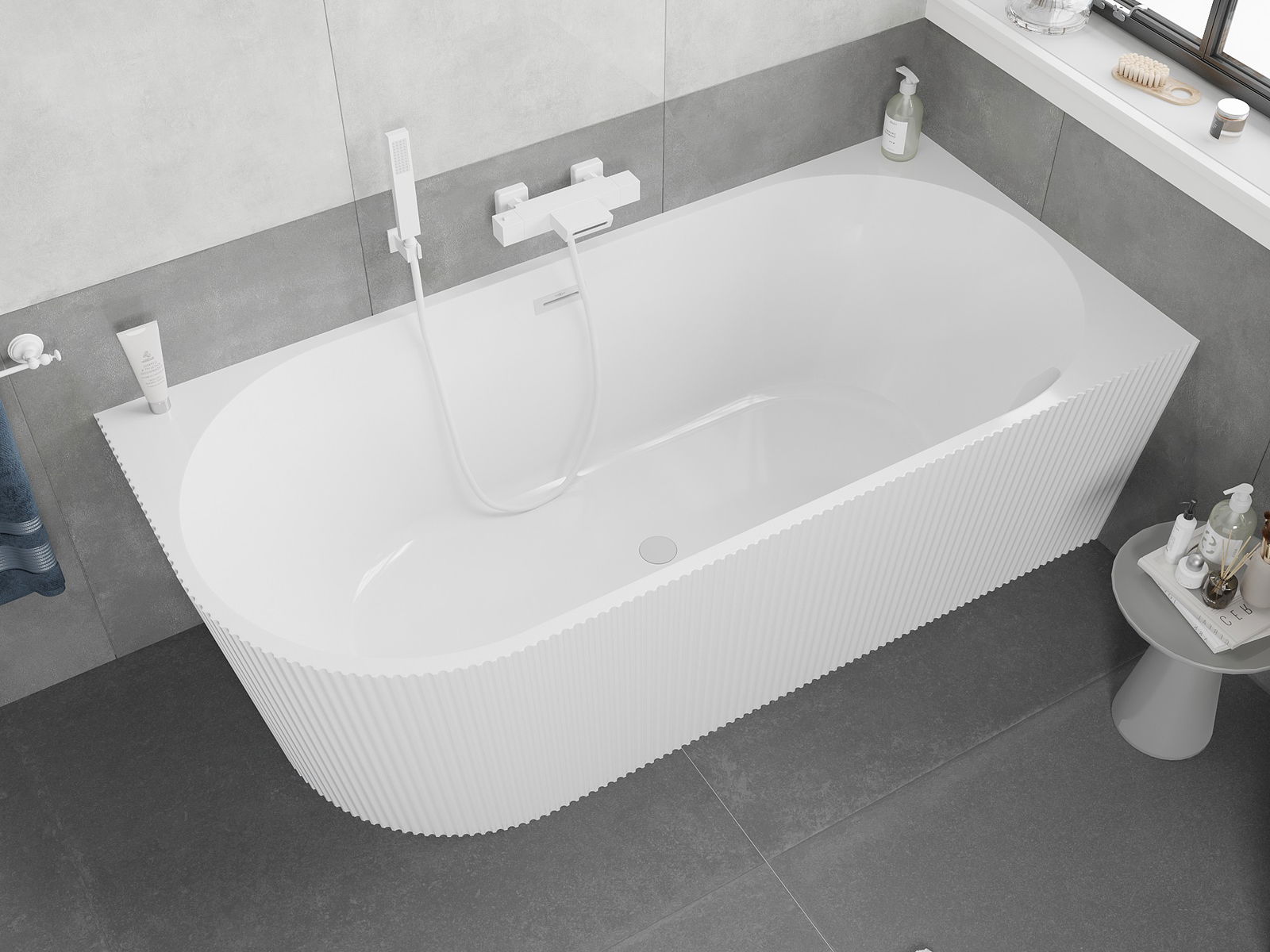 Mexen Silo freestanding corner bathtub right grooved 170 x 80 cm, white, white overflow - 52891708000P-20
