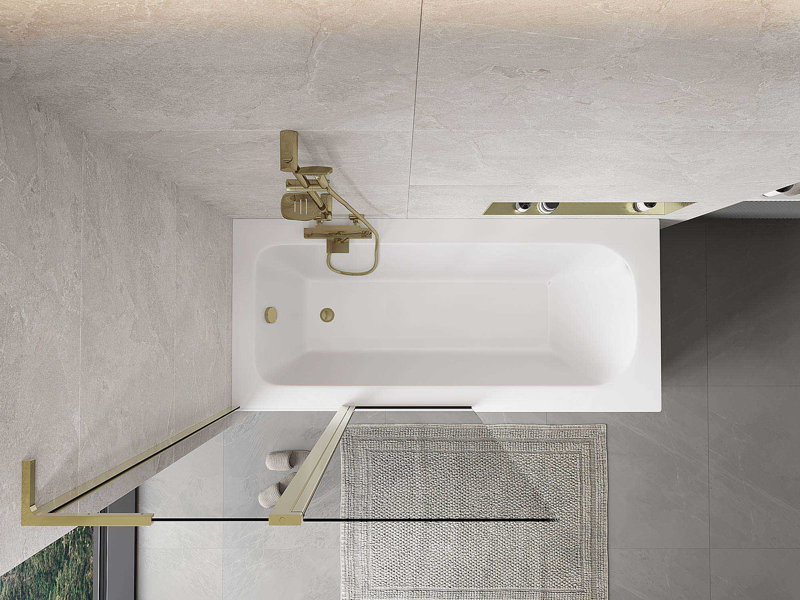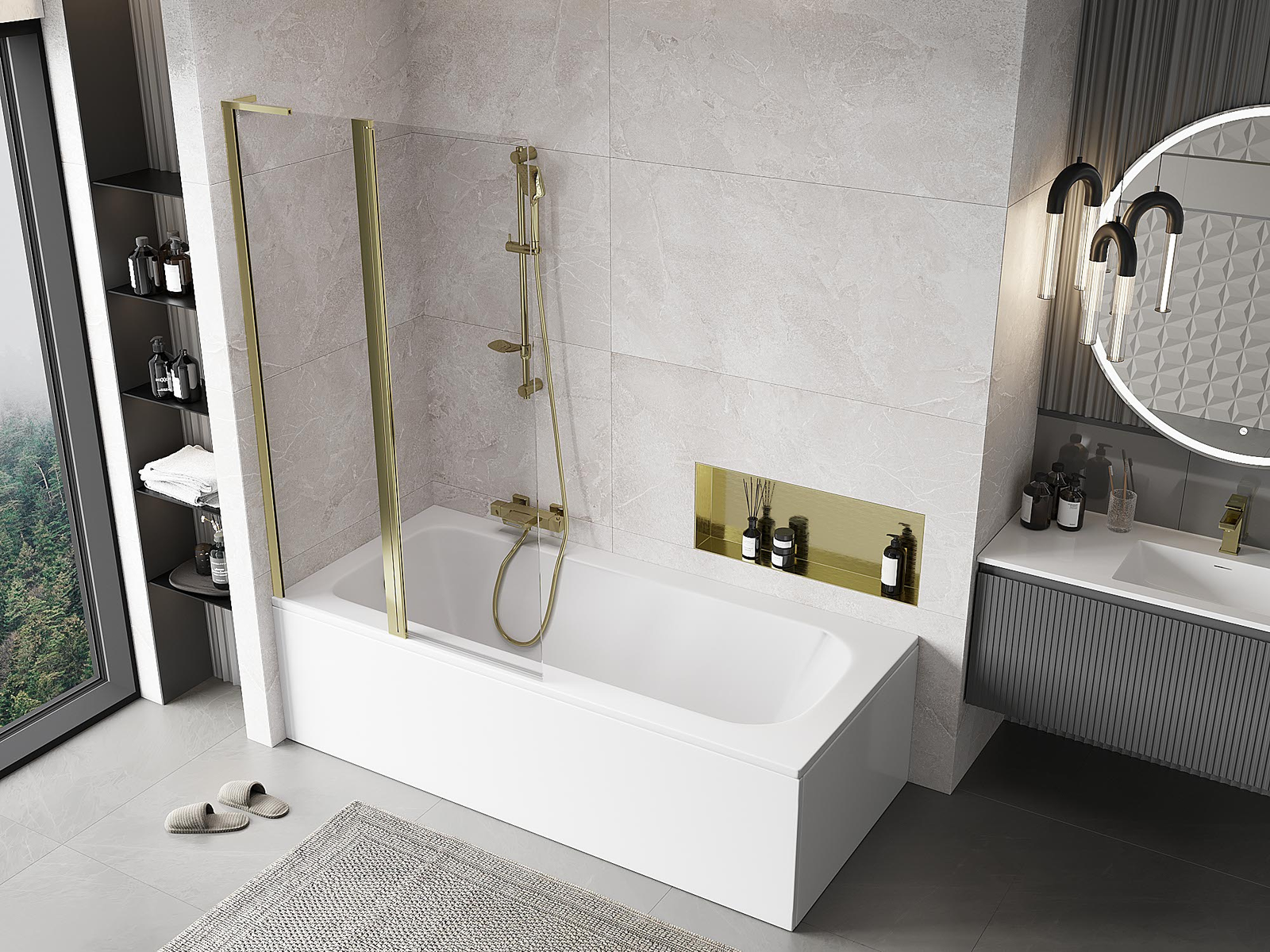 Screen made of two wings with the possibility of folding. This solution allows for more space-saving in the bathroom and enables free use of the remaining space when not using the bathing area.
