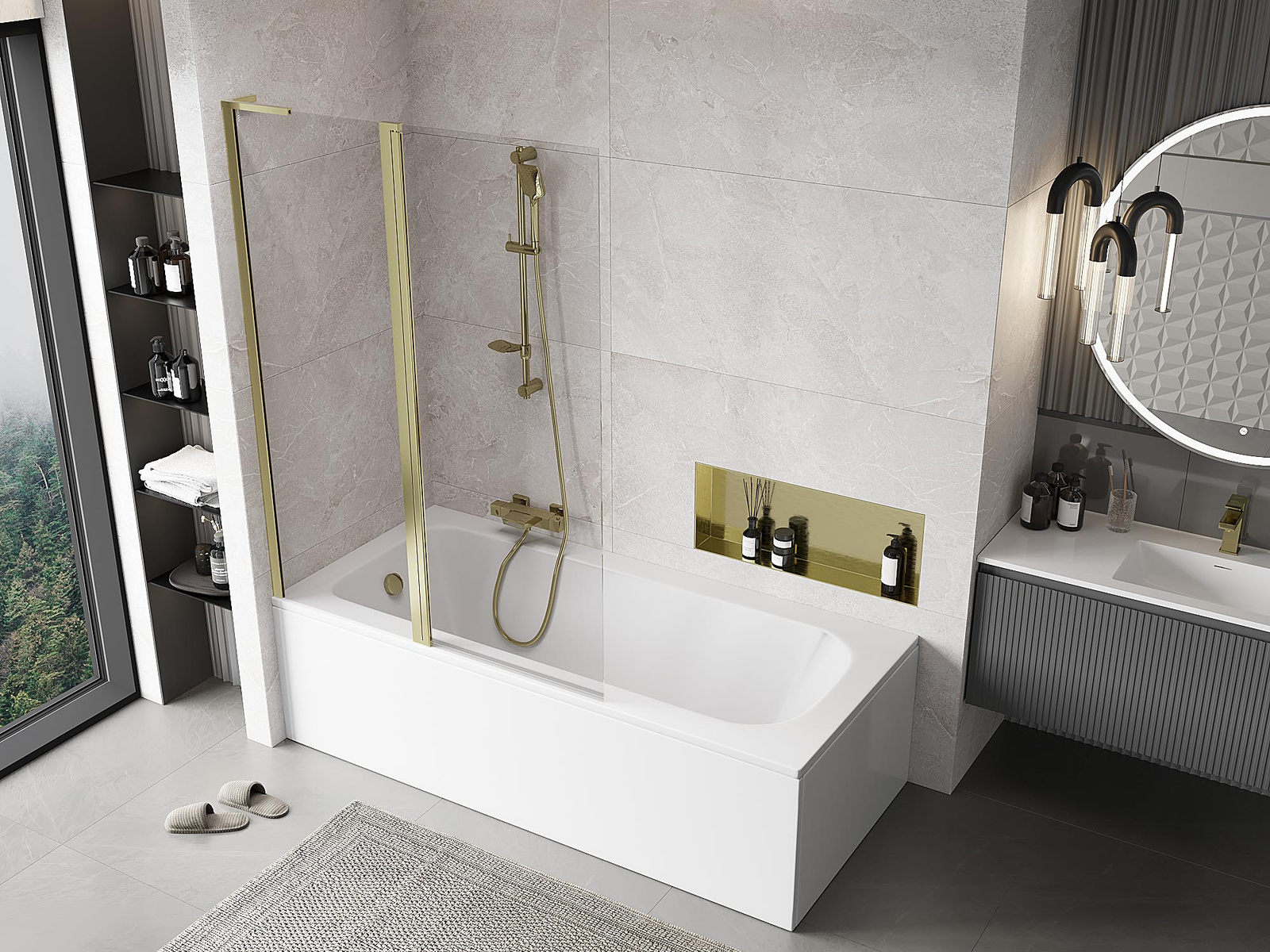 Effective protection against water spilling during bathing. The screen has seals that perfectly fit the glass surface and the edge of the bathtub. A functional solution ensuring safety and easy maintenance of cleanliness.
