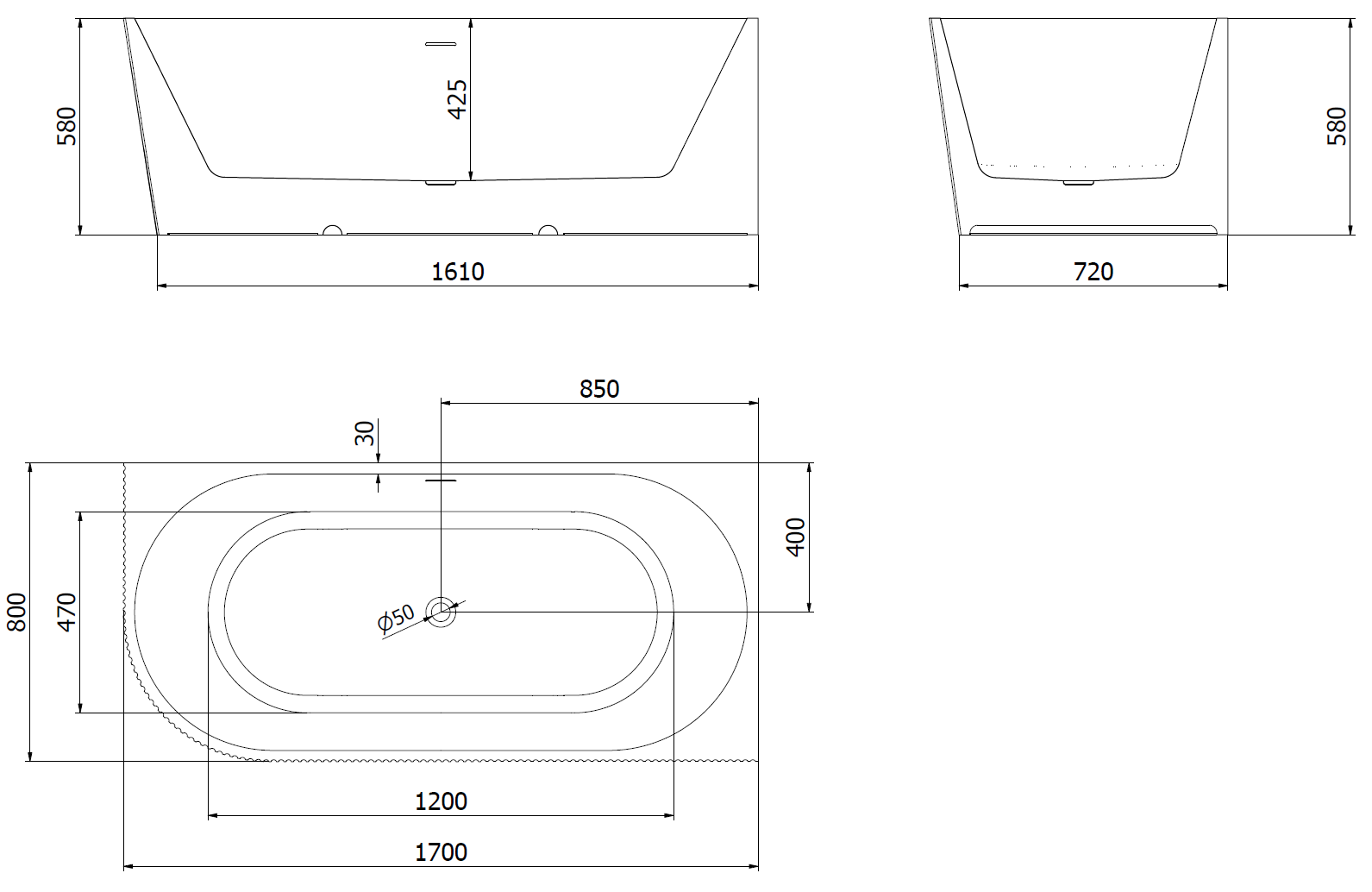 This is a modern material combining an elegant appearance with high durability. It is resistant to mechanical damage, easy to clean, and pleasant to the touch. The transparent form and thin rim of the bathtub add lightness and unique character, creating an impactful accent in bathroom design.
