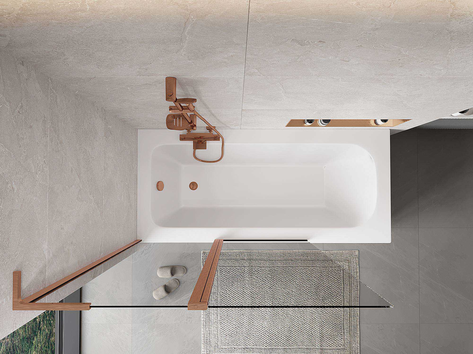 Screen made of two wings with the possibility of folding. This solution allows for more space-saving in the bathroom and enables free use of the remaining space when not using the bathing area.