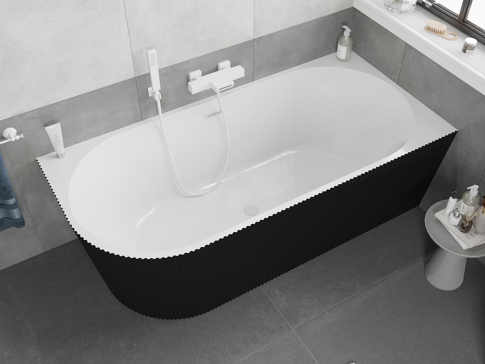 Mexen Silo freestanding corner bath right grooved 170 x 80 cm, white/black, white overflow - 52891708075P-20
