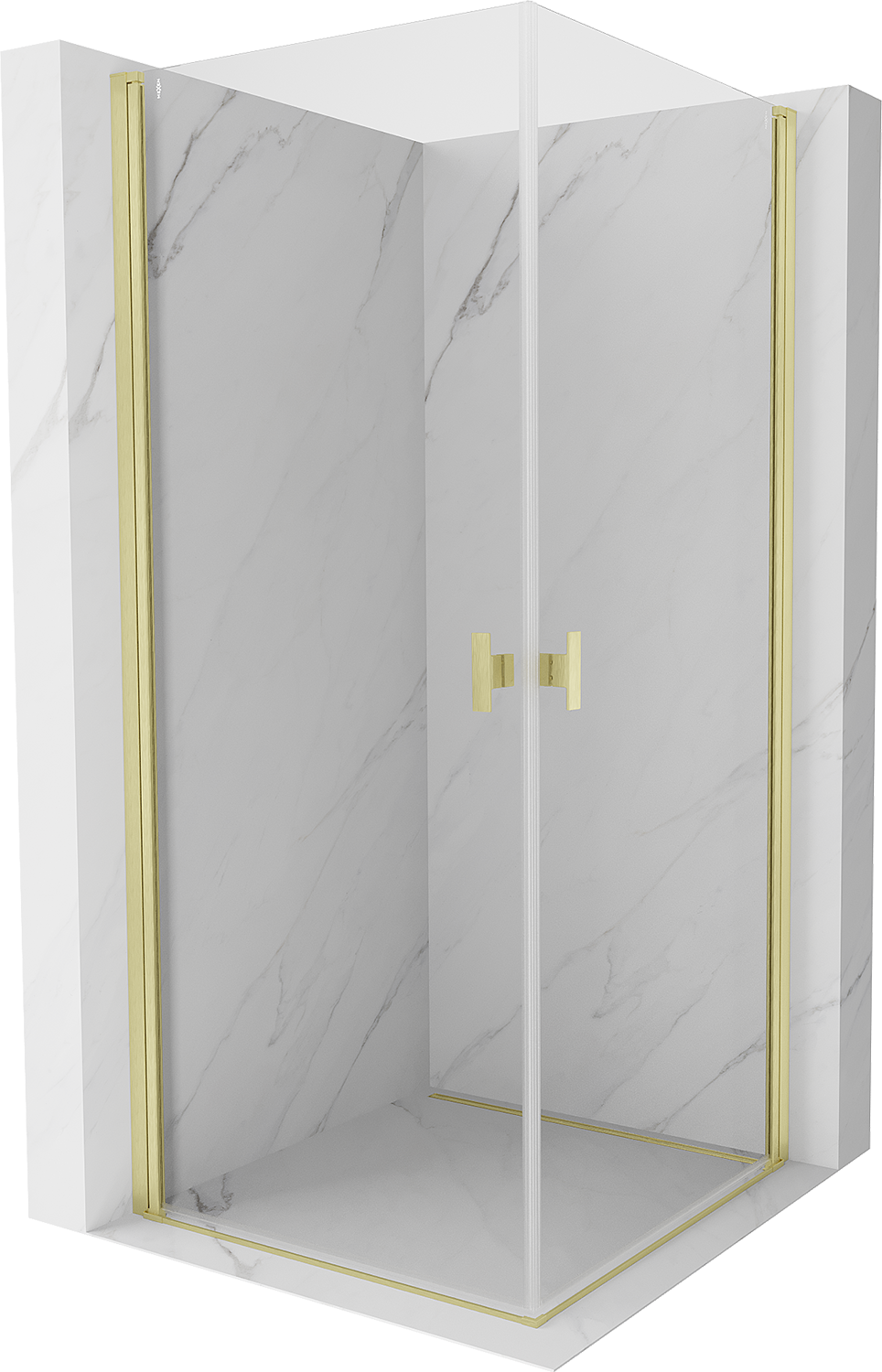 Mexen Mist-B Duo Hinged Shower Enclosure 70 x 70 cm, Transparent, Brushed Gold - 8A2-070-070-55-00