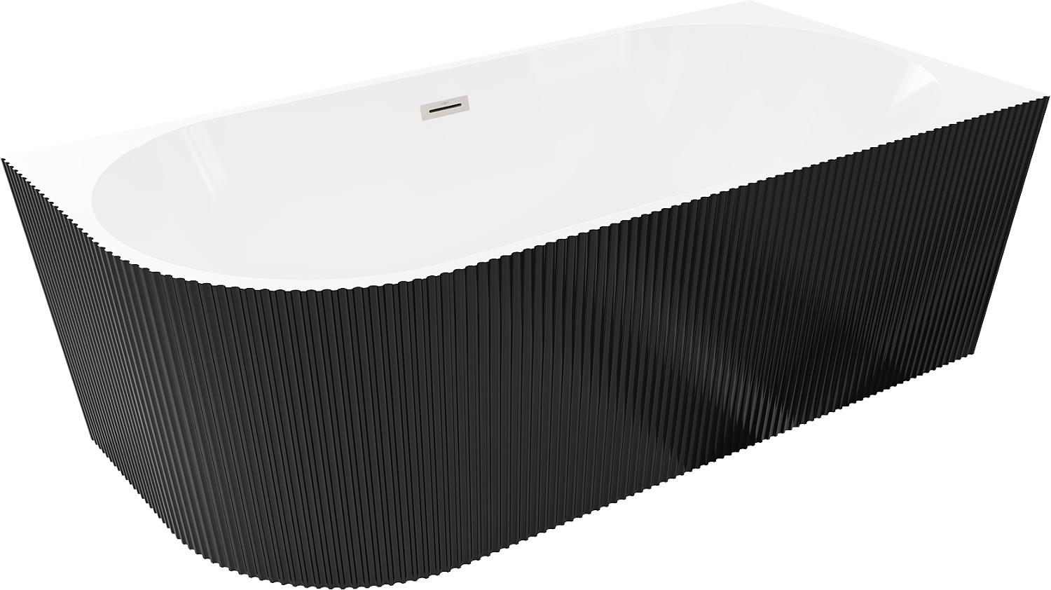 Mexen Silo freestanding corner bathtub right fluted 170 x 80 cm, white/black, brushed nickel overflow - 52891708075P-97