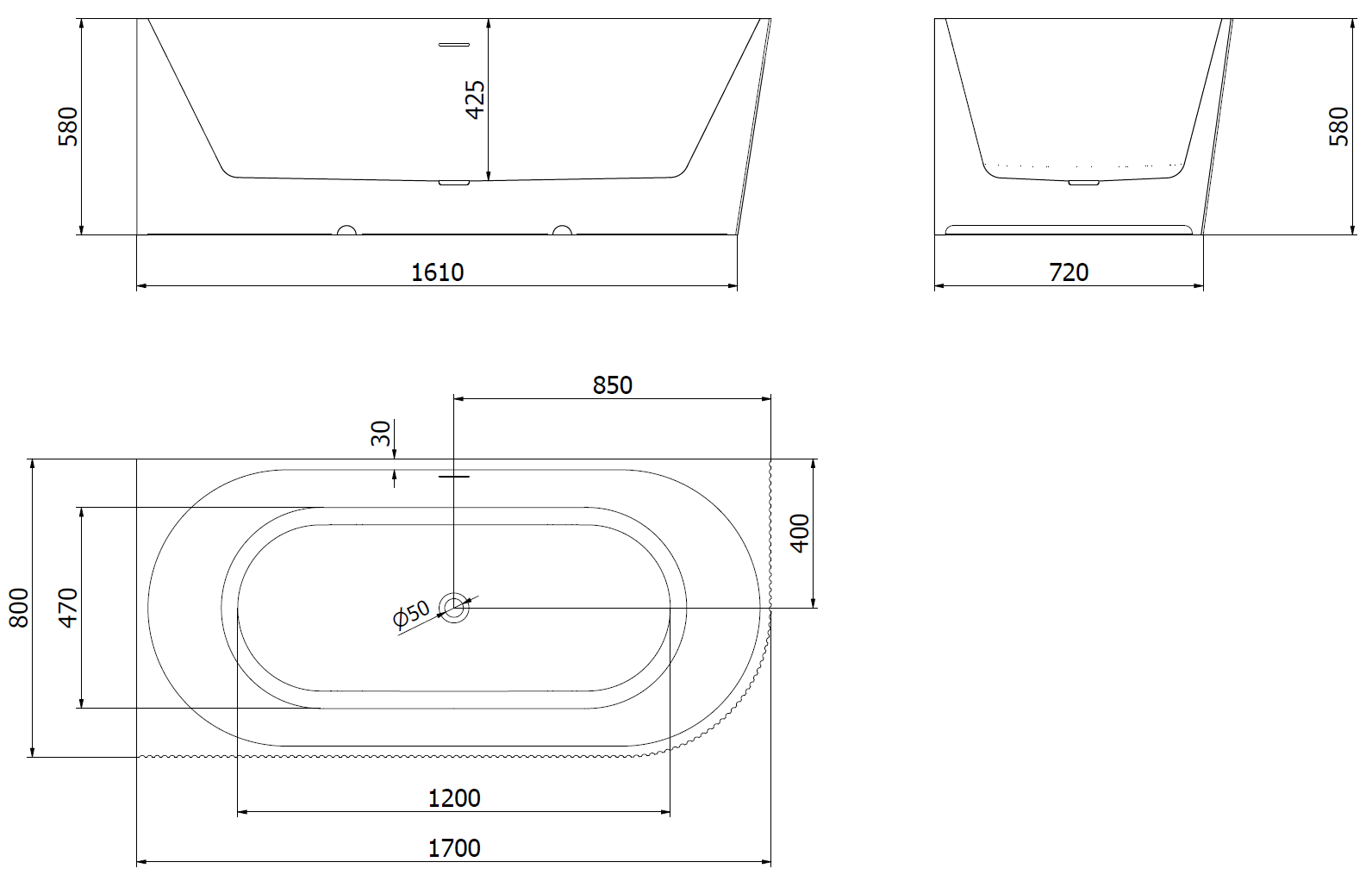 This is a modern material combining an elegant appearance with high durability. It is resistant to mechanical damage, easy to clean, and pleasant to the touch. The transparent form and thin rim of the bathtub add lightness and unique character, creating an impactful accent in bathroom design.