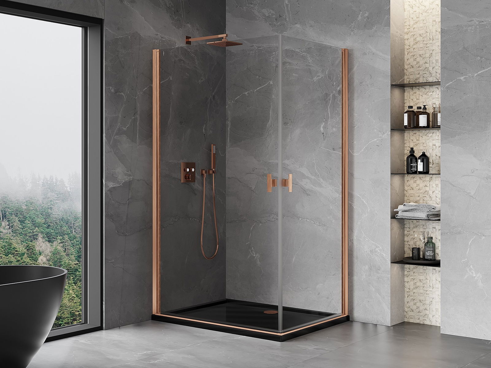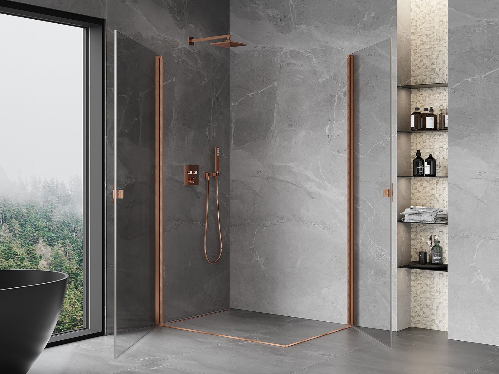 Mexen Mist-B Duo pivot shower cabin 95 x 75 cm, transparent, brushed copper - 8A2-095-075-65-00