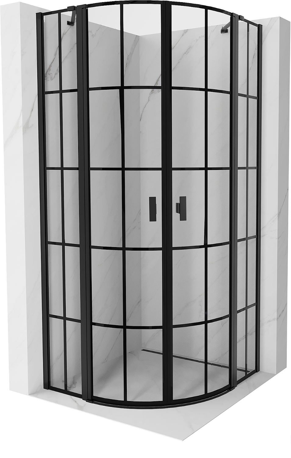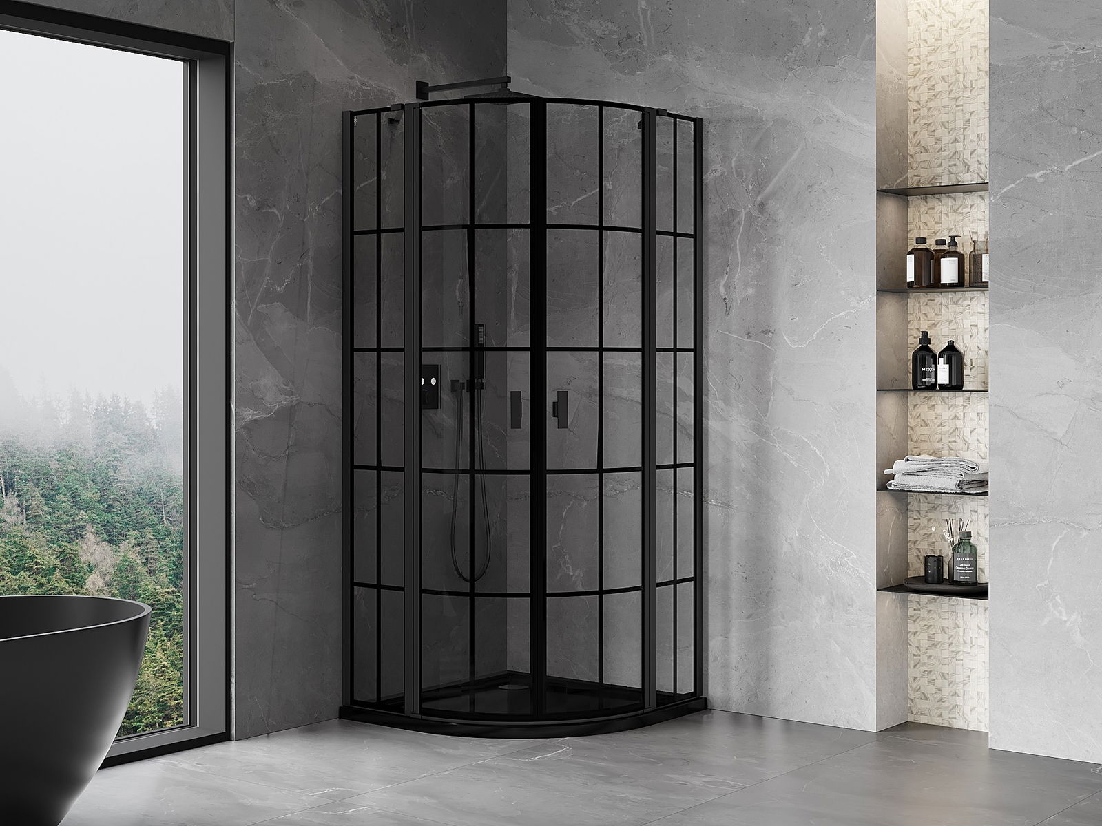 Mexen Mist semi-circular shower enclosure with hinged doors 90 x 90 cm, black grid, black - 8A32-090-090-70-77