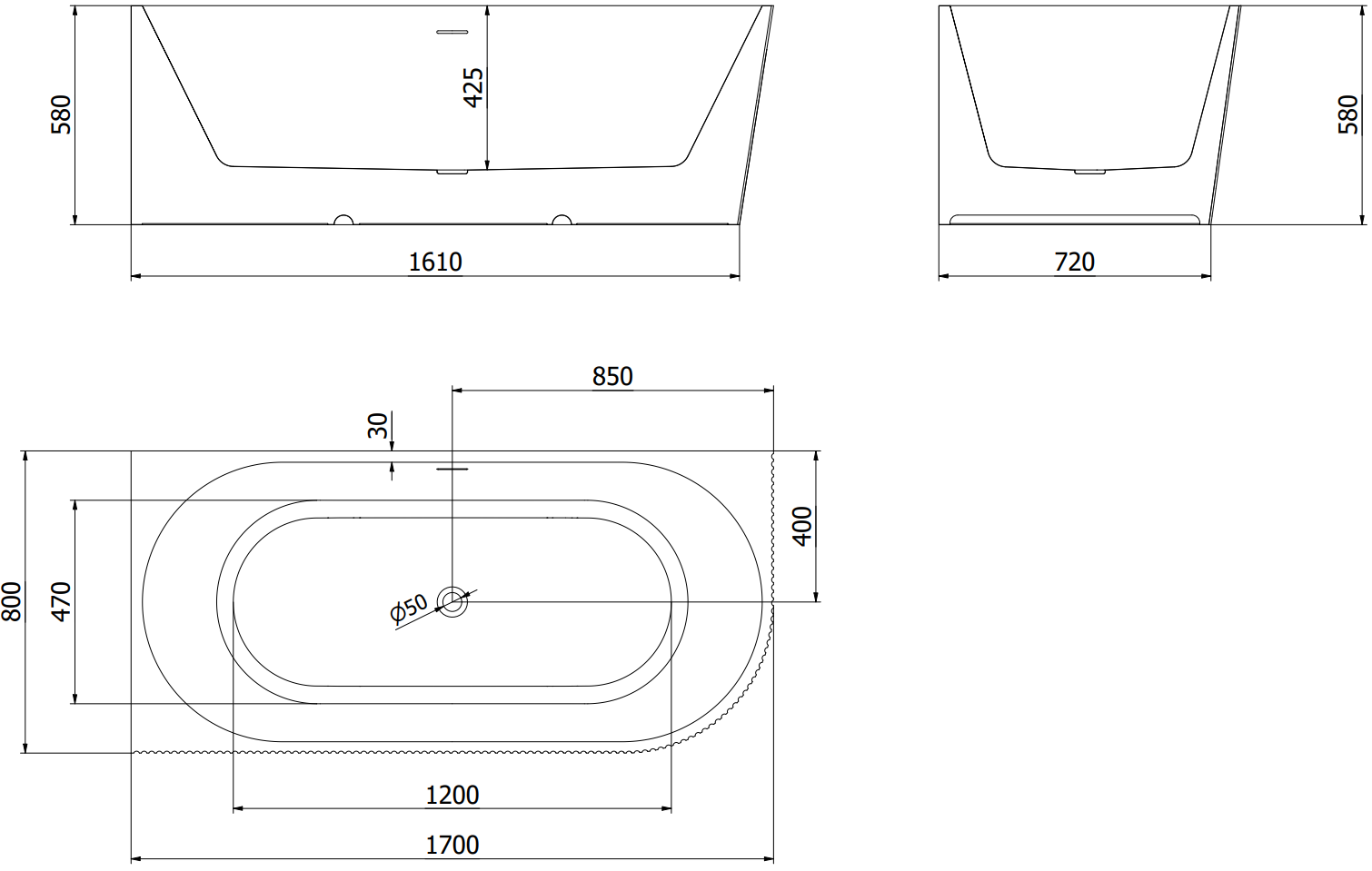 The overflow opening is referred to as the "safety opening". It allows excess water to escape, protecting the bathroom from flooding. This is a safe and practical solution that lets you enjoy a bath without worrying about the water level rising.