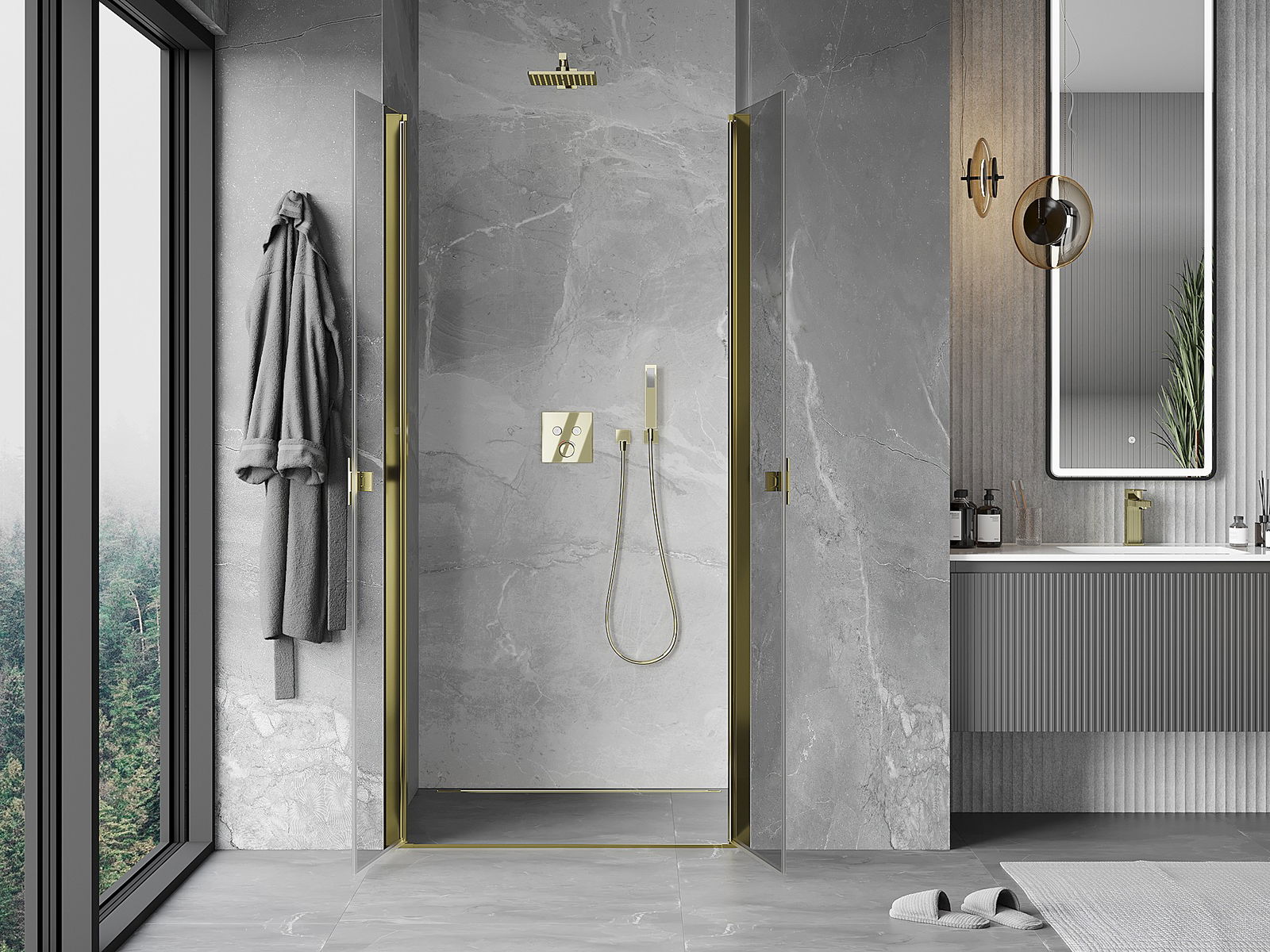 A handy and comfortable handle made from durable and resistant metal. Its trendy shape combined with a finish matched to the colour of the profiles gives the whole a modern and stylish look, highlighting the aesthetics of every bathroom.