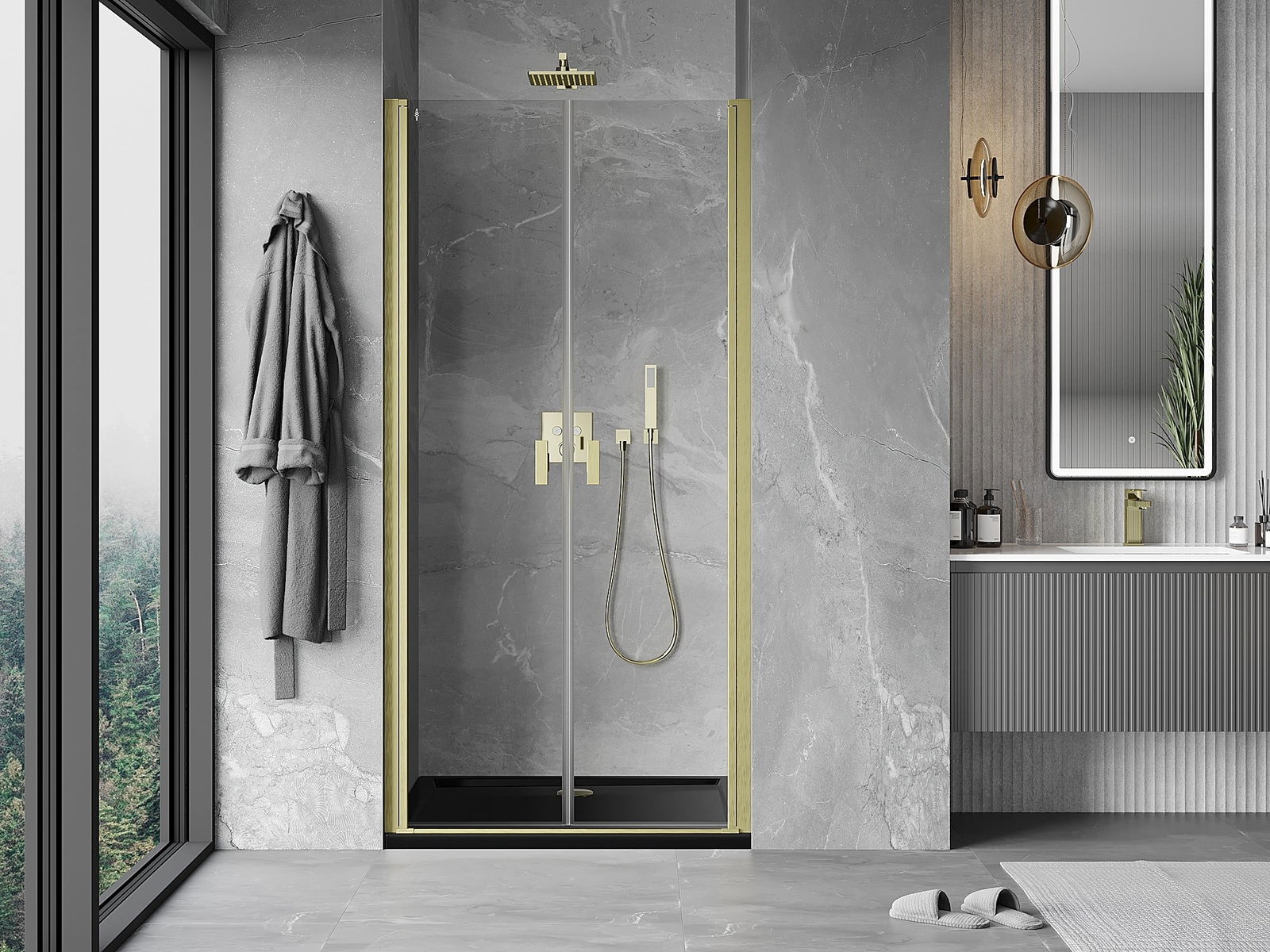A handy and comfortable handle made from durable and resistant metal. Its trendy shape combined with a finish matched to the colour of the profiles gives the whole a modern and stylish look, highlighting the aesthetics of every bathroom.
