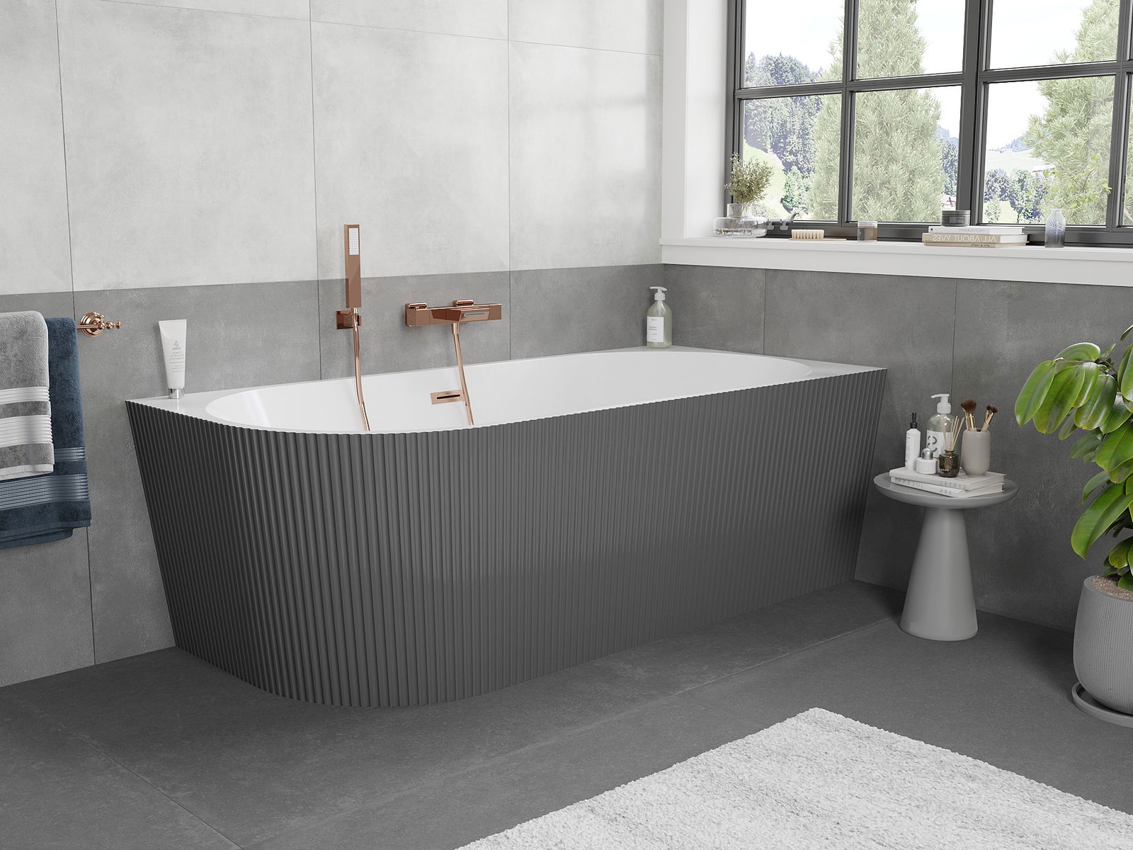 Mexen Silo freestanding corner right grooved bathtub 170 x 80 cm, white/grey, brushed copper overflow - 52891708062P-65