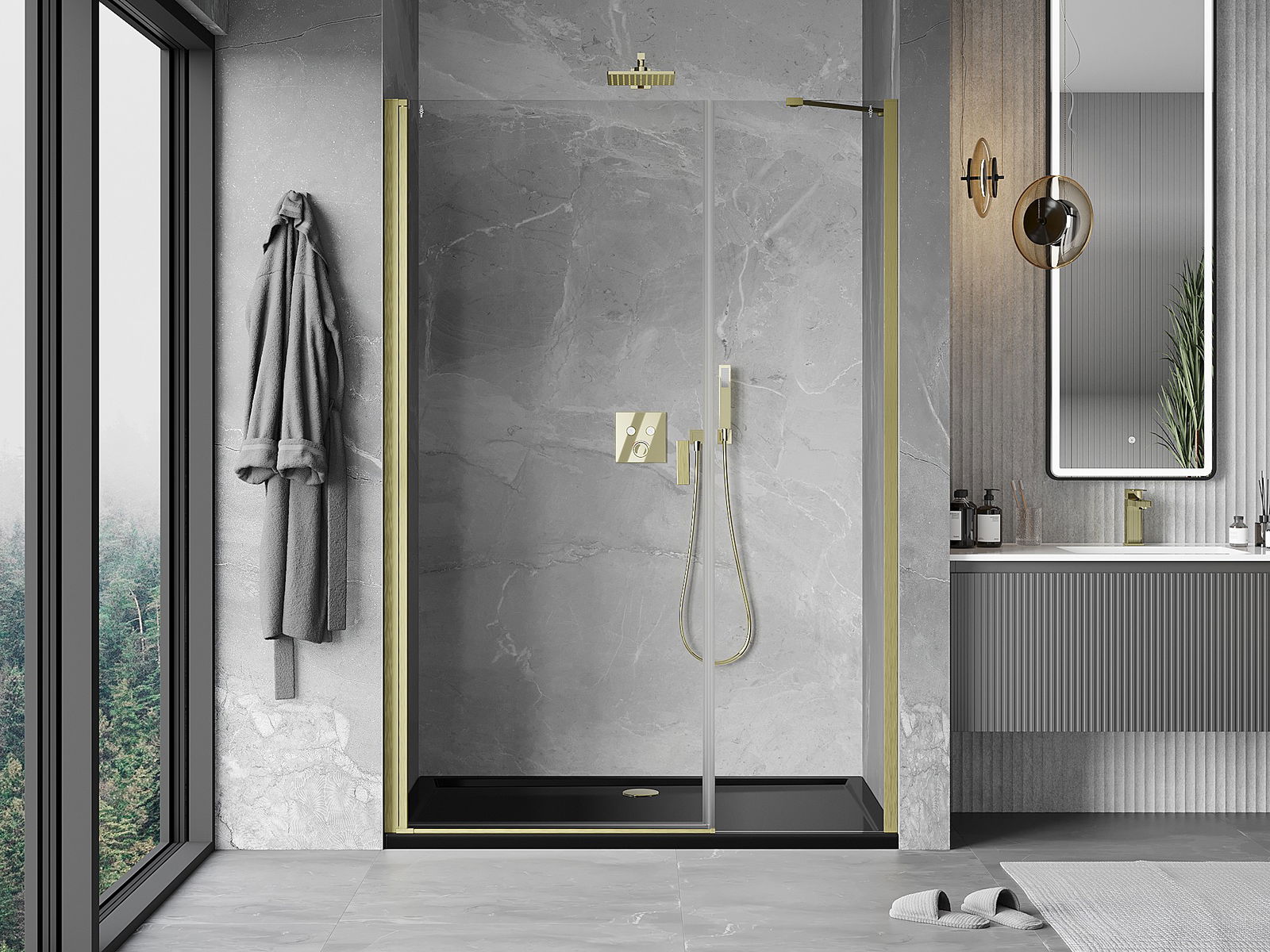 Mexen Mist-B 95 cm Hinged Shower Door, Transparent, Brushed Gold - 8A2-095-001-55-00