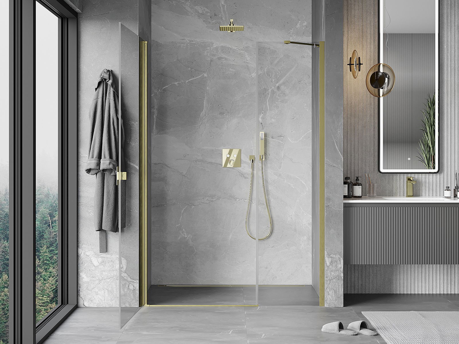 A handy and comfortable handle made from durable and resistant metal. Its trendy shape combined with a finish matched to the colour of the profiles gives the whole a modern and stylish look, highlighting the aesthetics of every bathroom.