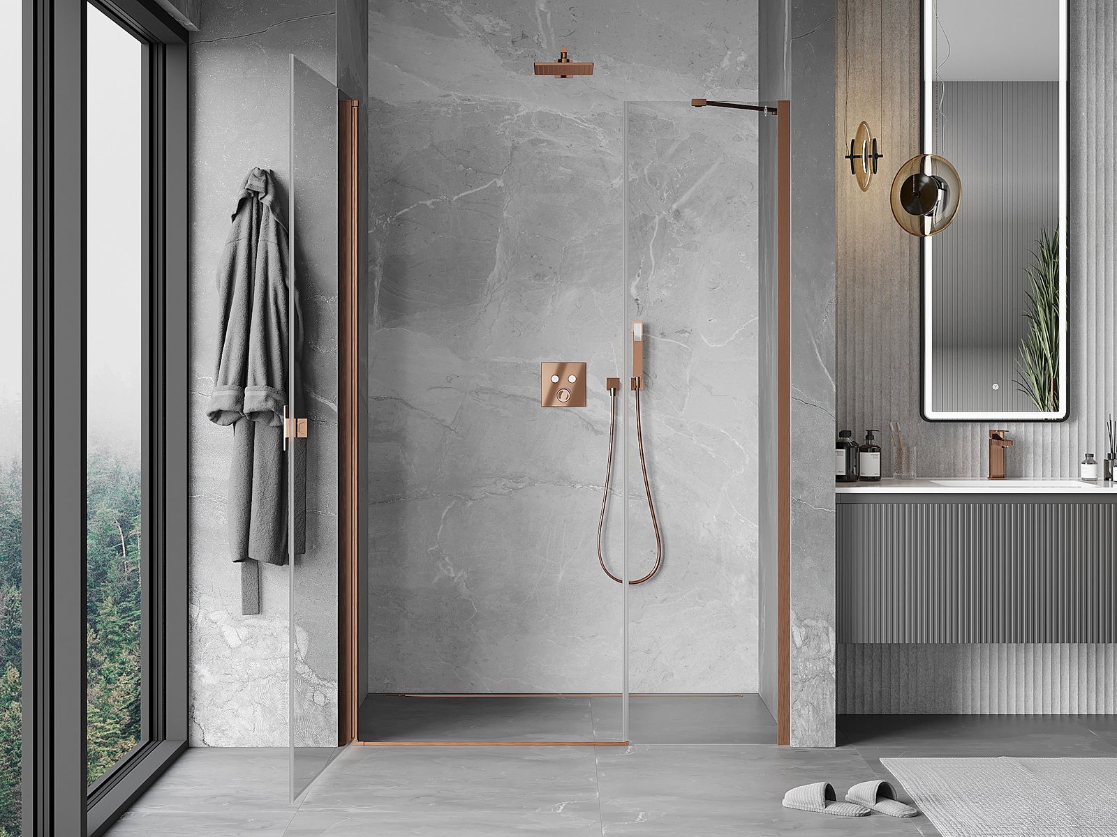 Mexen Mist-B 100 cm Hinged Shower Door, Transparent, Brushed Copper - 8A2-100-001-65-00