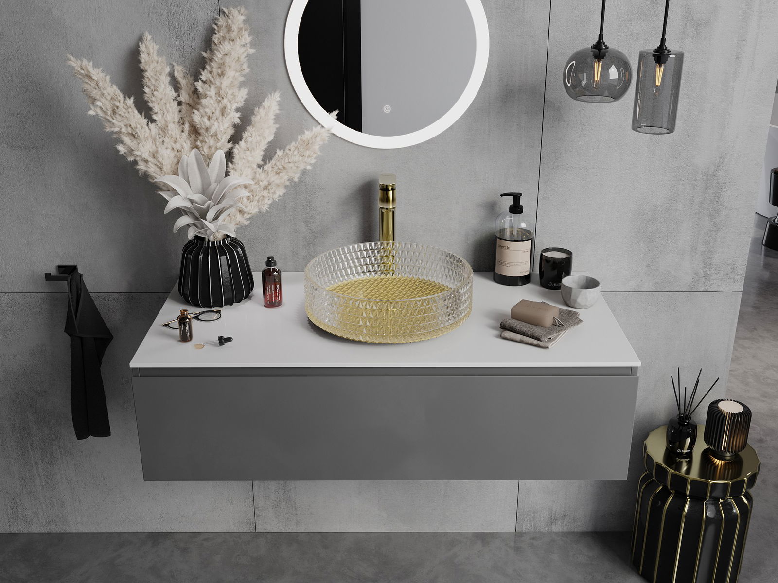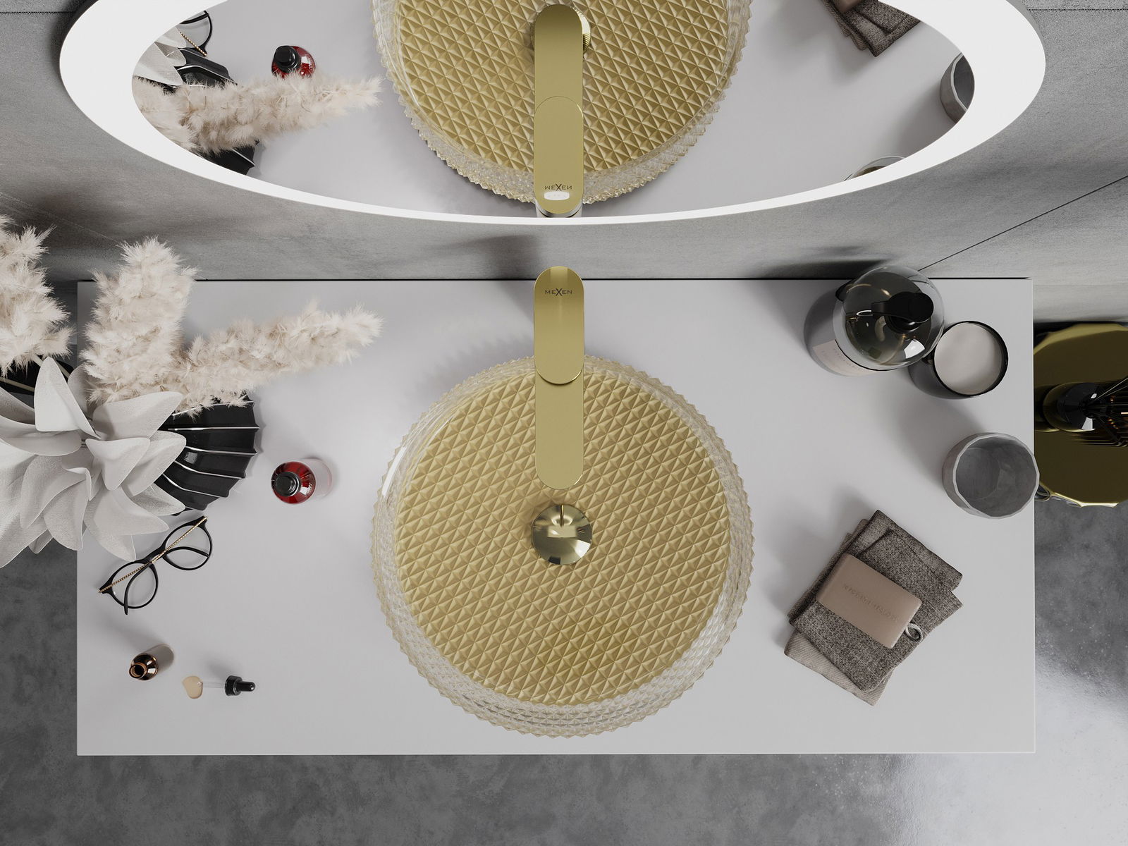 Mexen Aura glass countertop washbasin 39 x 39 cm, transparent/gold - 24013951
