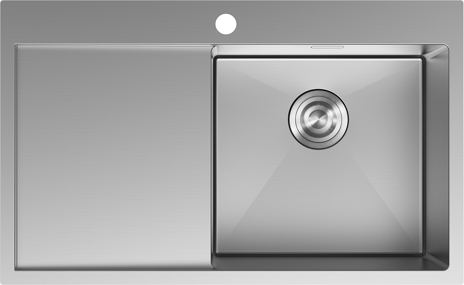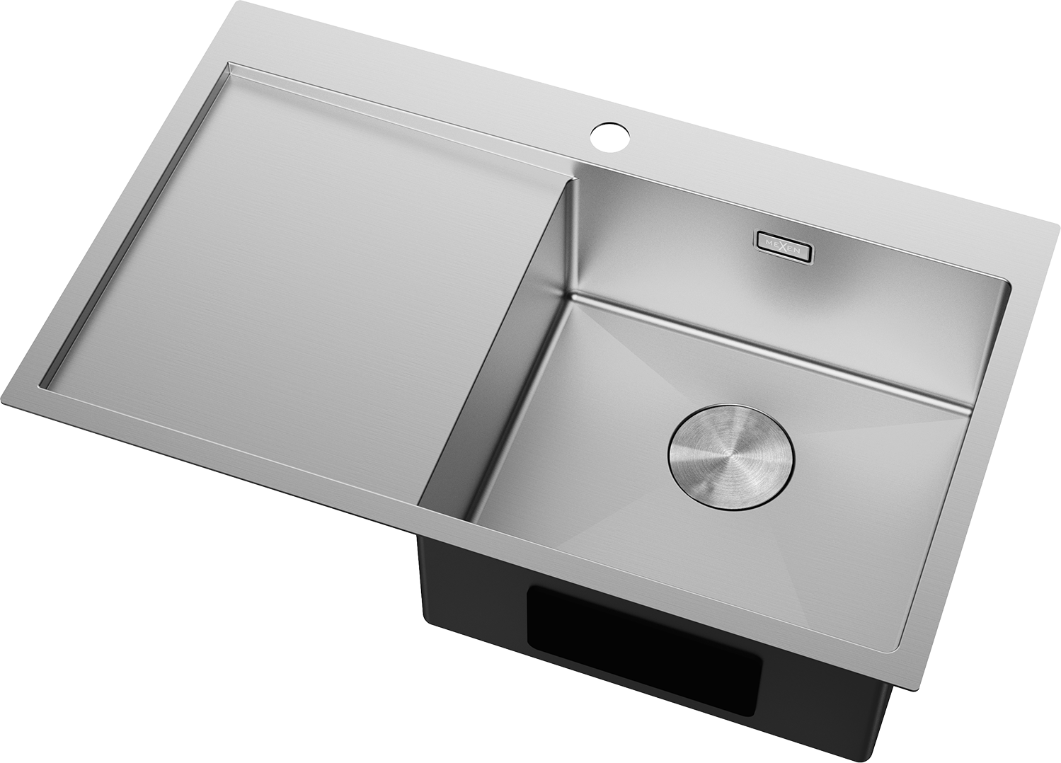 Choosing a sink with a draining board is a practical solution that allows you to set aside washed dishes or vegetables and fruits. The draining board makes daily cooking easier and helps maintain order in the kitchen.